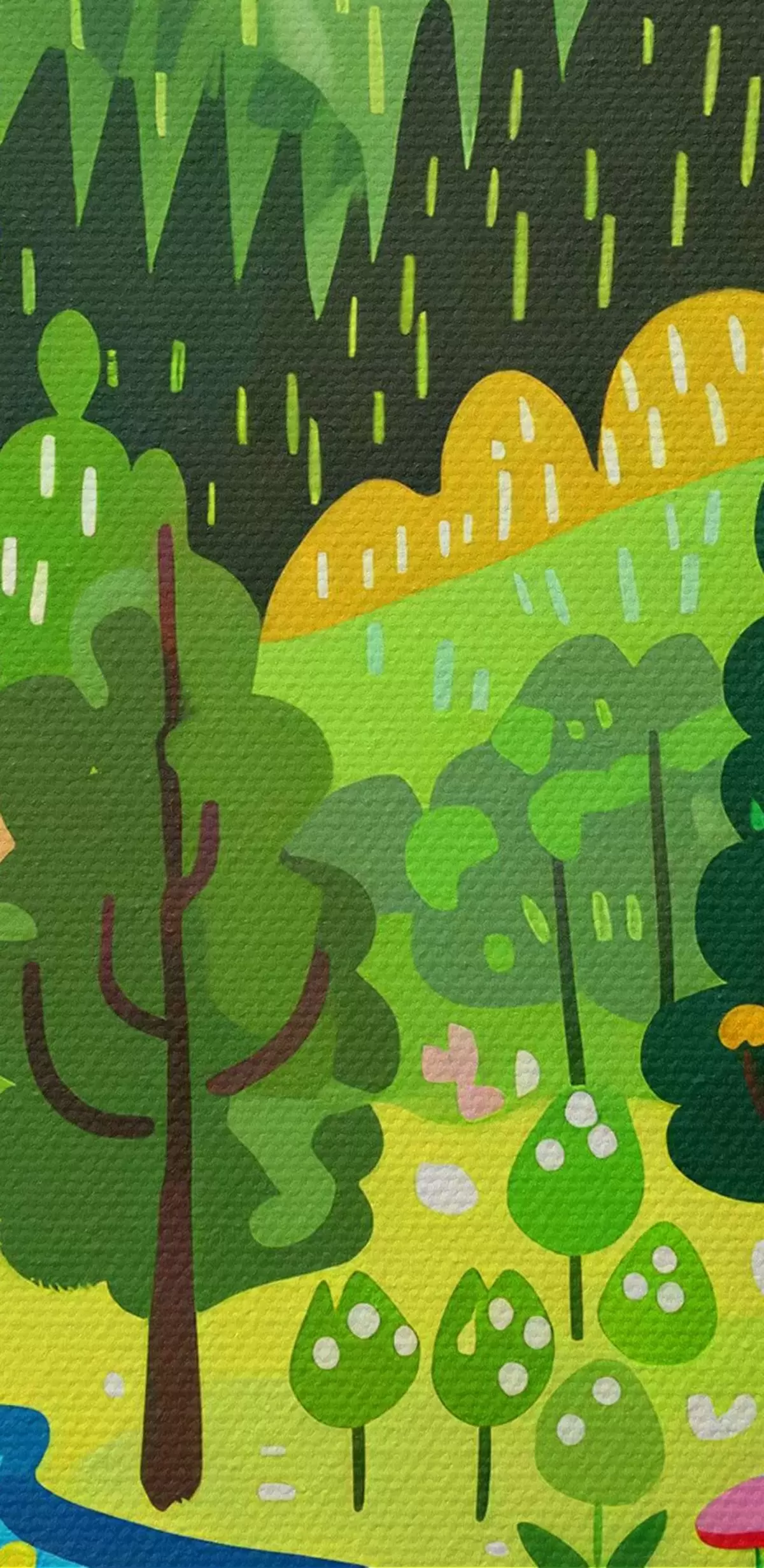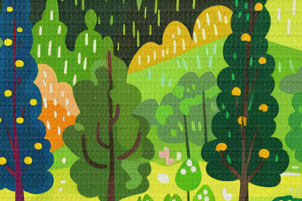 Picturi rotunde Cartoon peisaj cu copaci și flori r38140