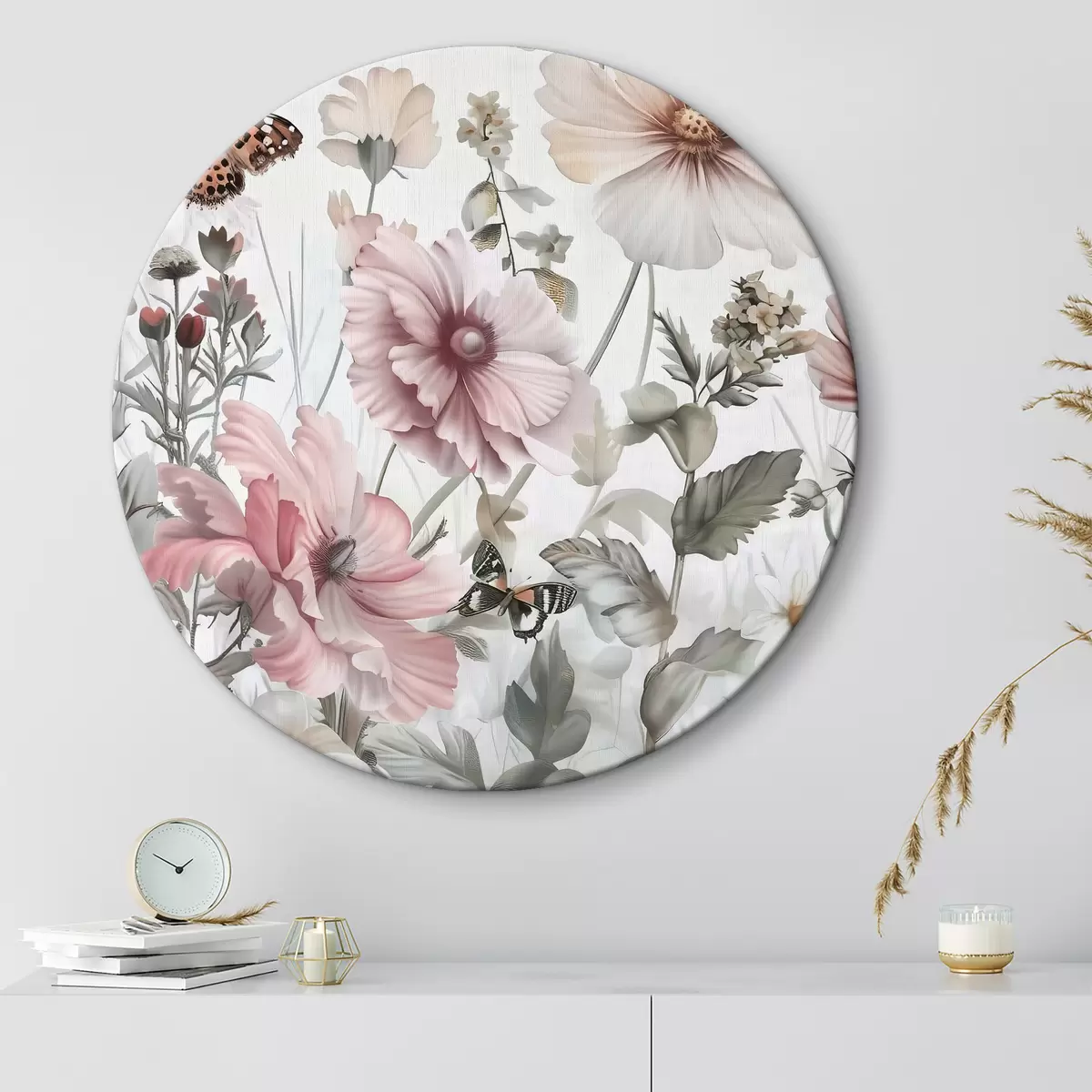 Picturi rotunde Close-up de flori și fluturi Nr r38153