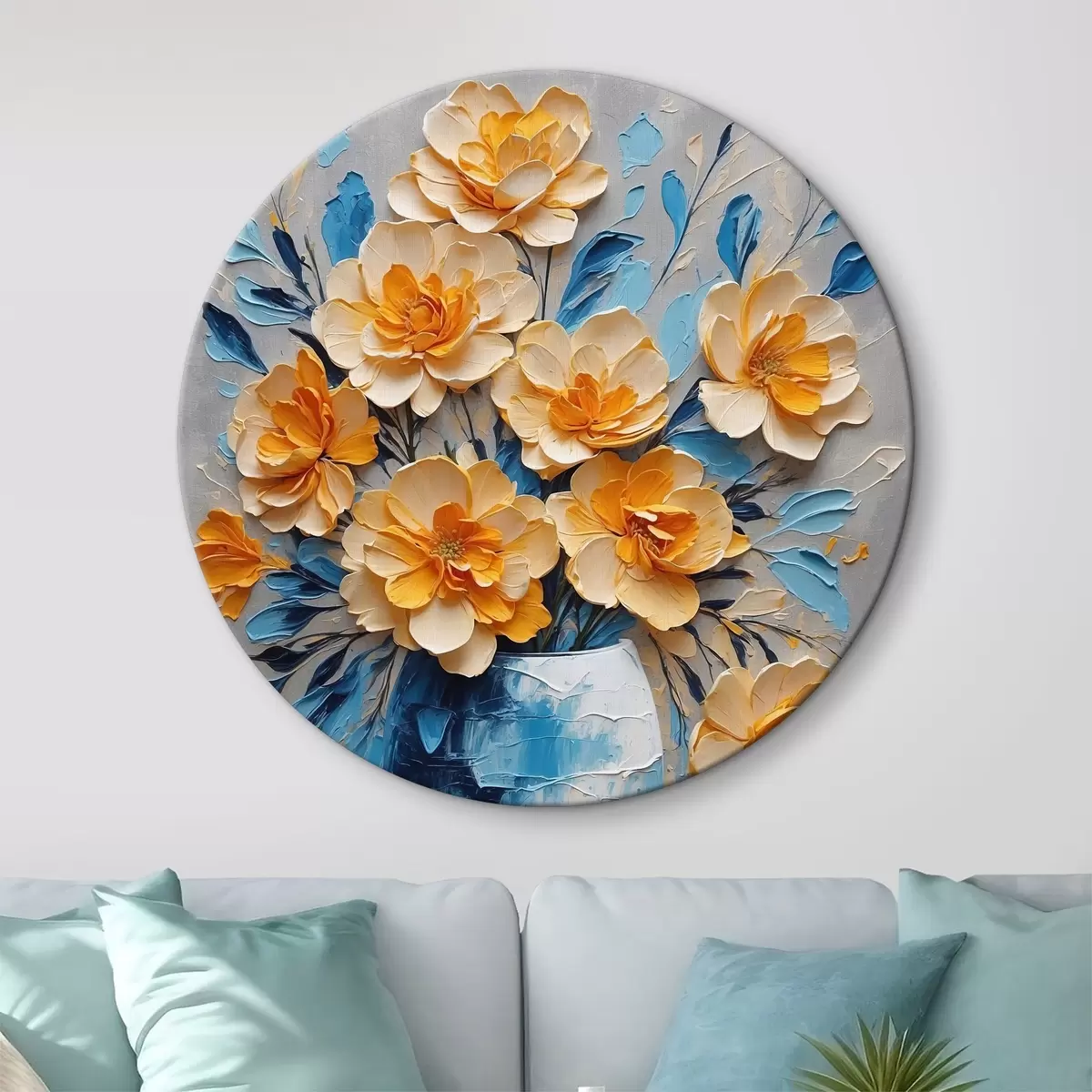 Picturi rotunde Flori într-o vază albastră pe un fundal gri Nr r38175