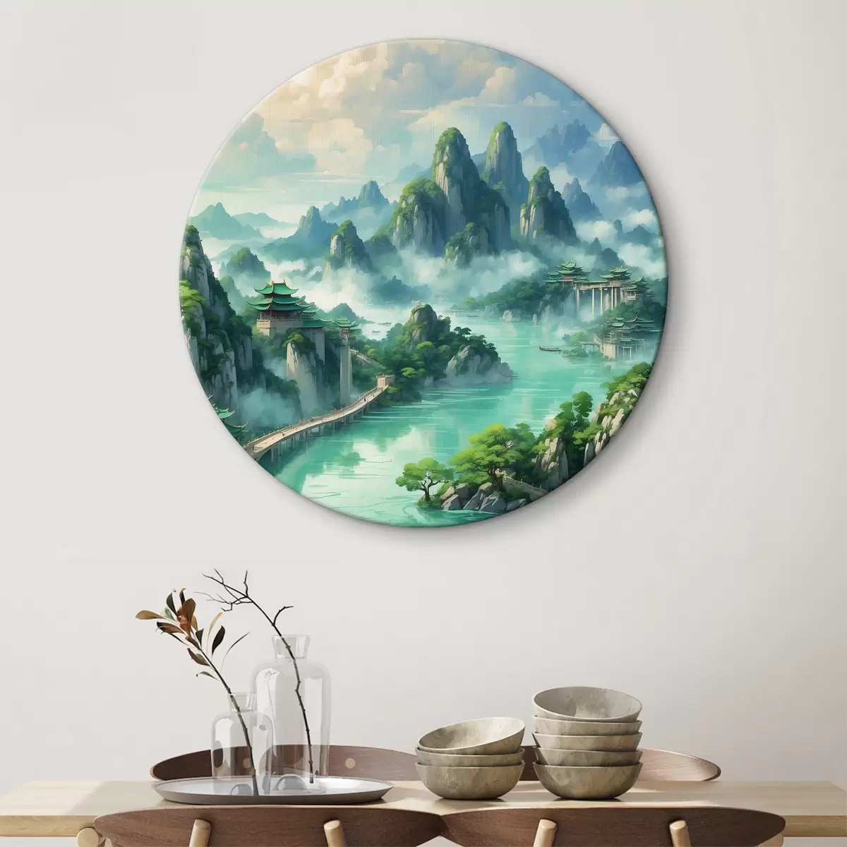 Picturi rotunde Râu cu pod și clădiri Nr r38184