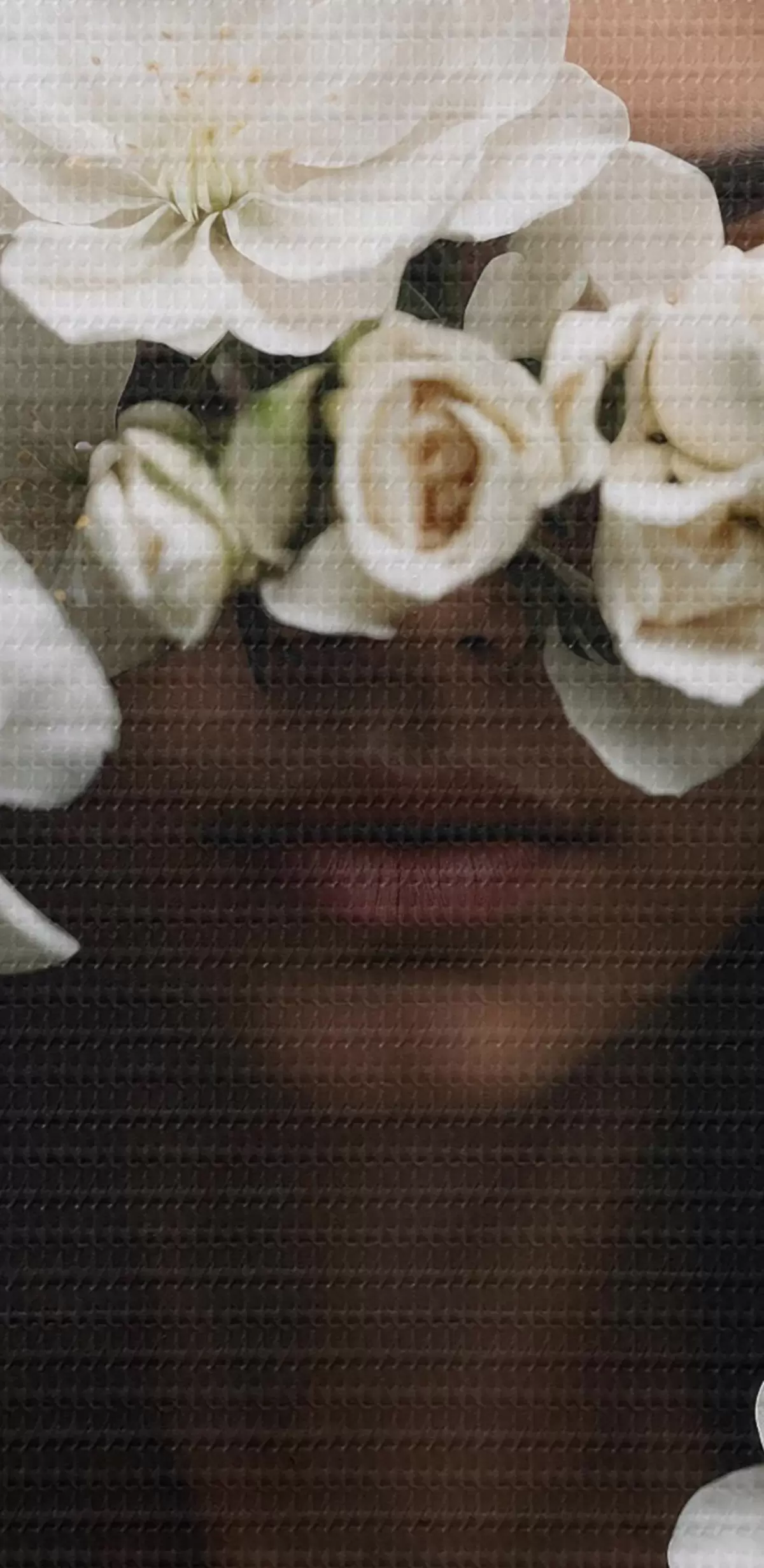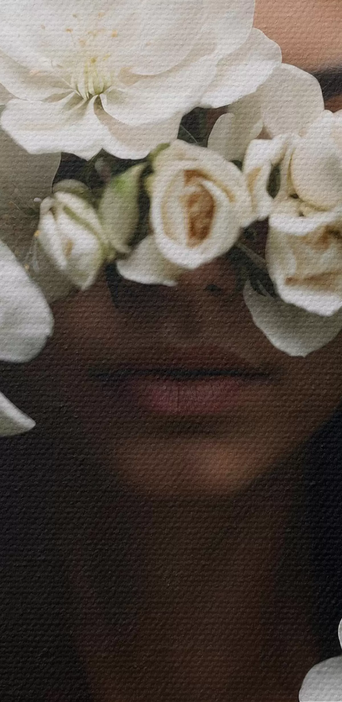 Picturi rotunde Femeie care își ascunde fața în spatele florilor albe Nr r38194