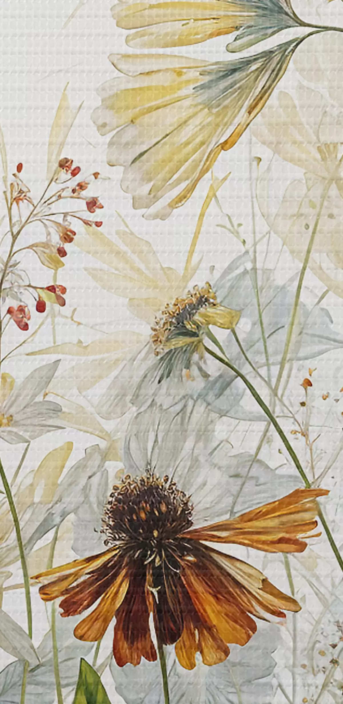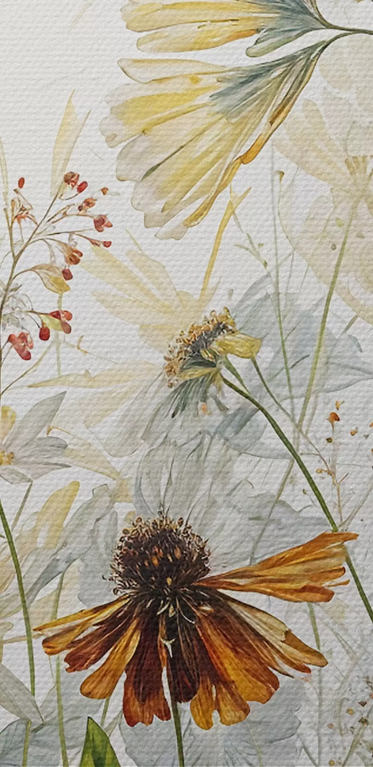 Picturi rotunde Câmp flori delicate pe fundal alb pictura in ulei Nr r38197