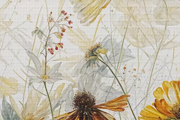 Picturi rotunde Câmp flori delicate pe fundal alb pictura in ulei Nr r38197