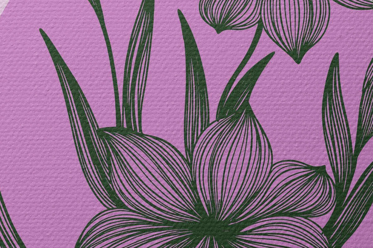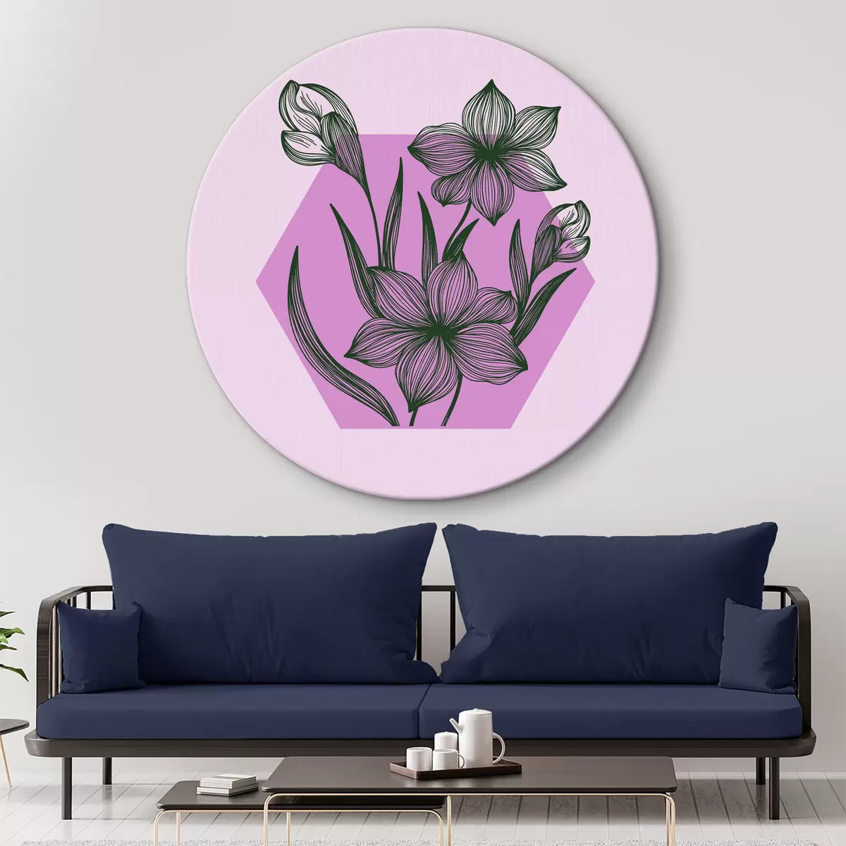 Picturi rotunde Desen de flori pe un fundal violet Nr r38213