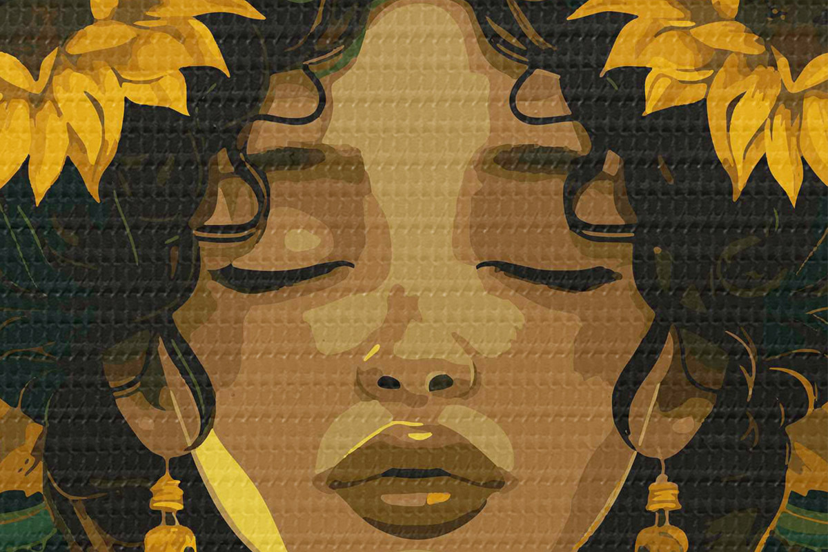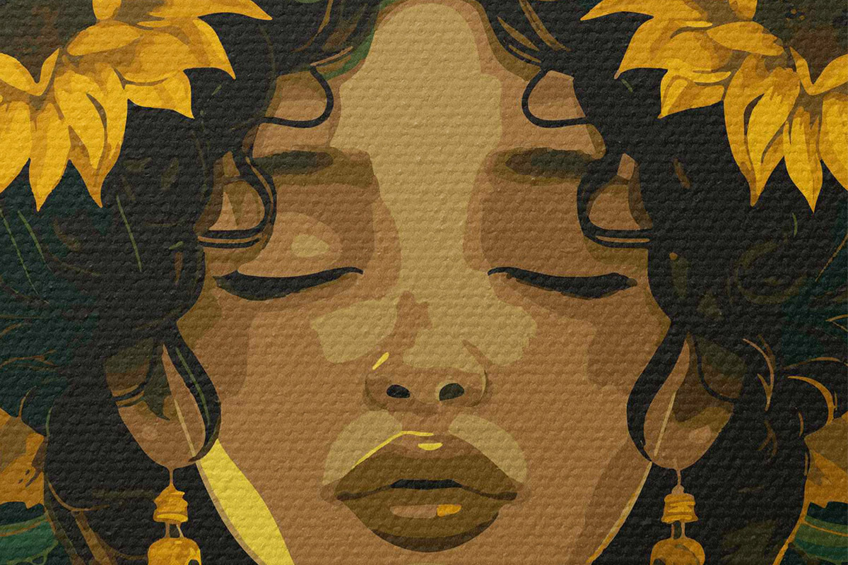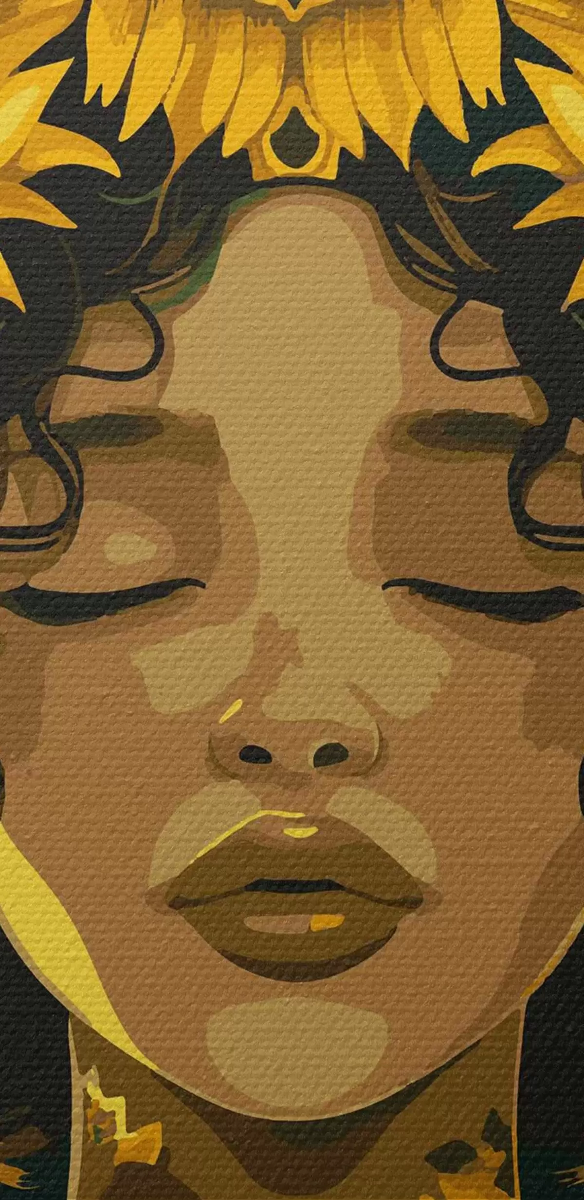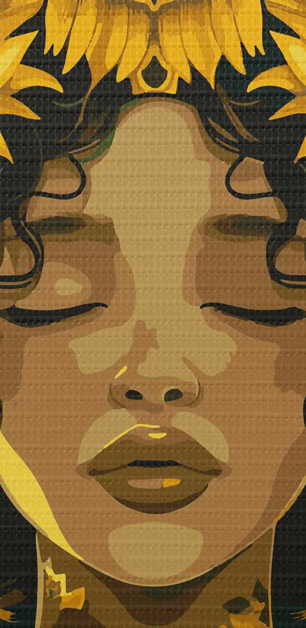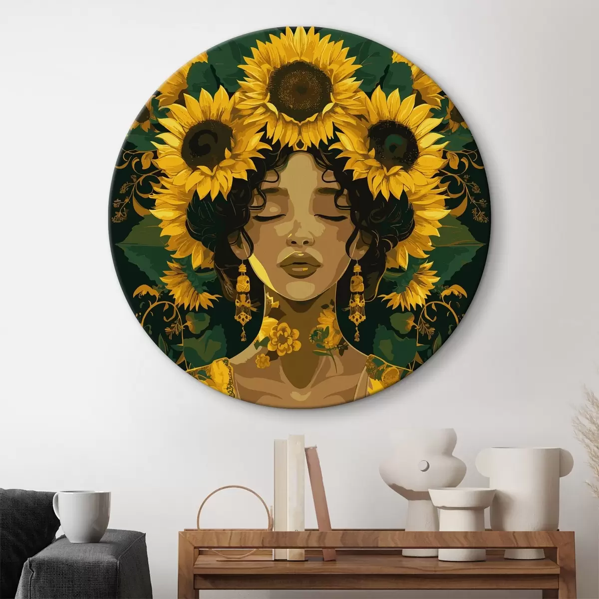 Picturi rotunde Femeie cu floarea soarelui în păr Nr r38263