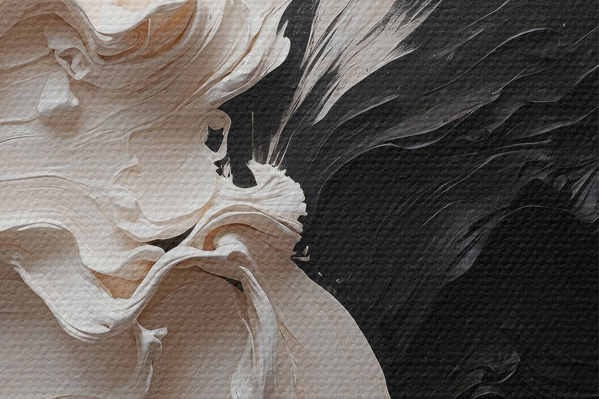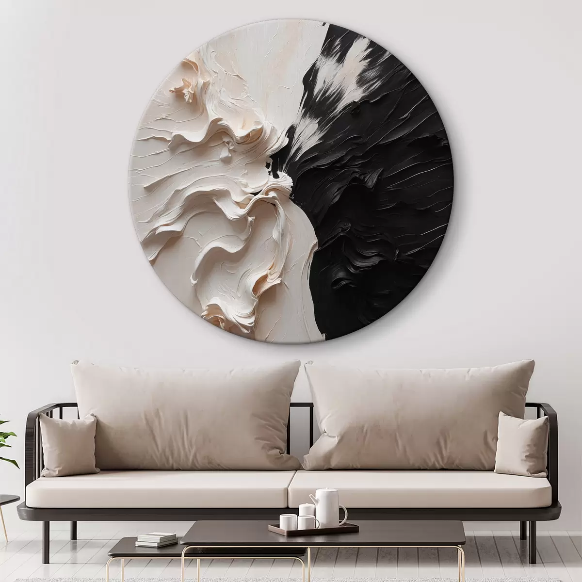 Picturi rotunde Pictură abstractă în ulei în culorile alb și negru r38300