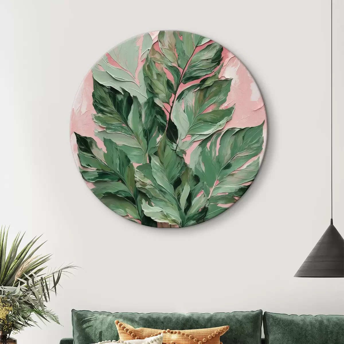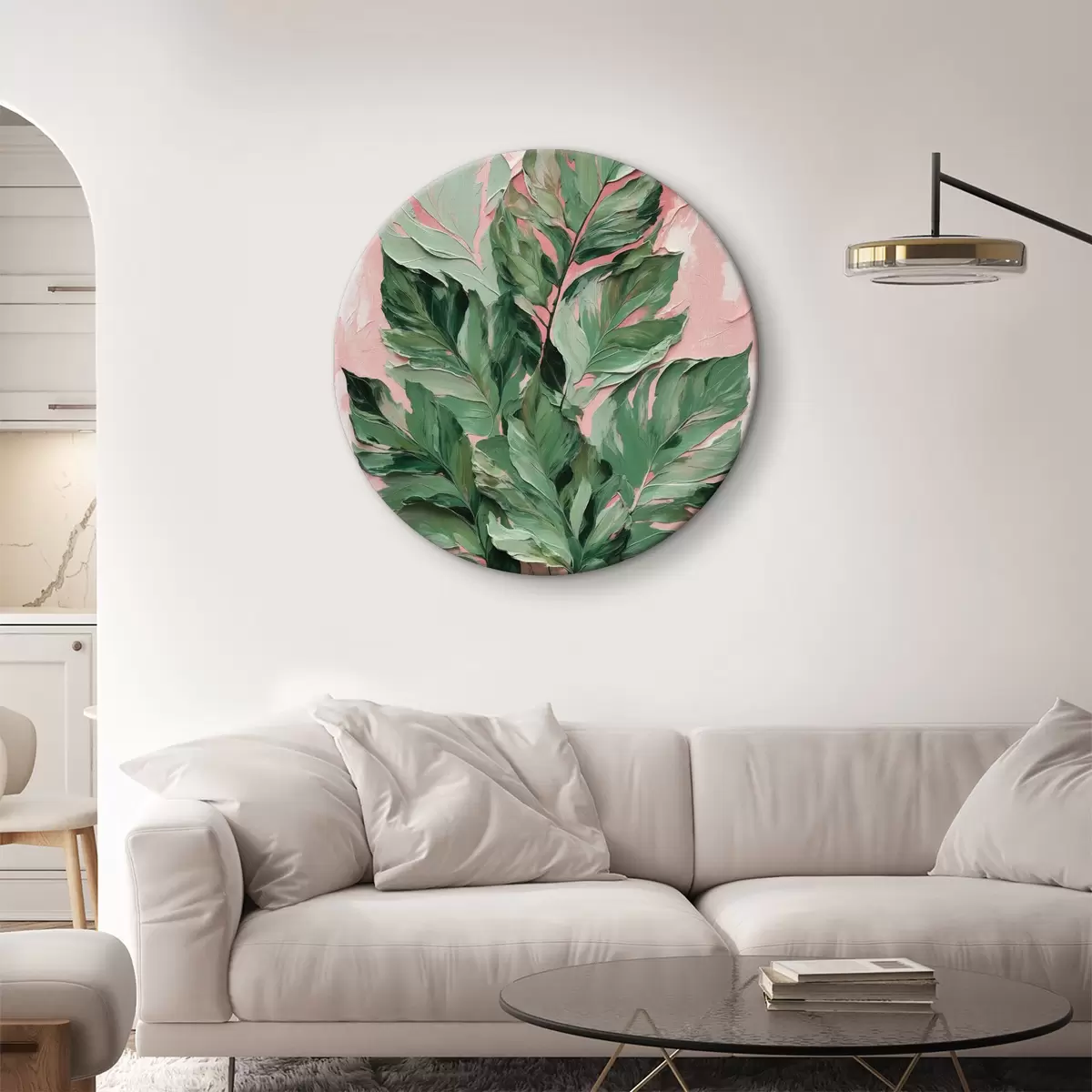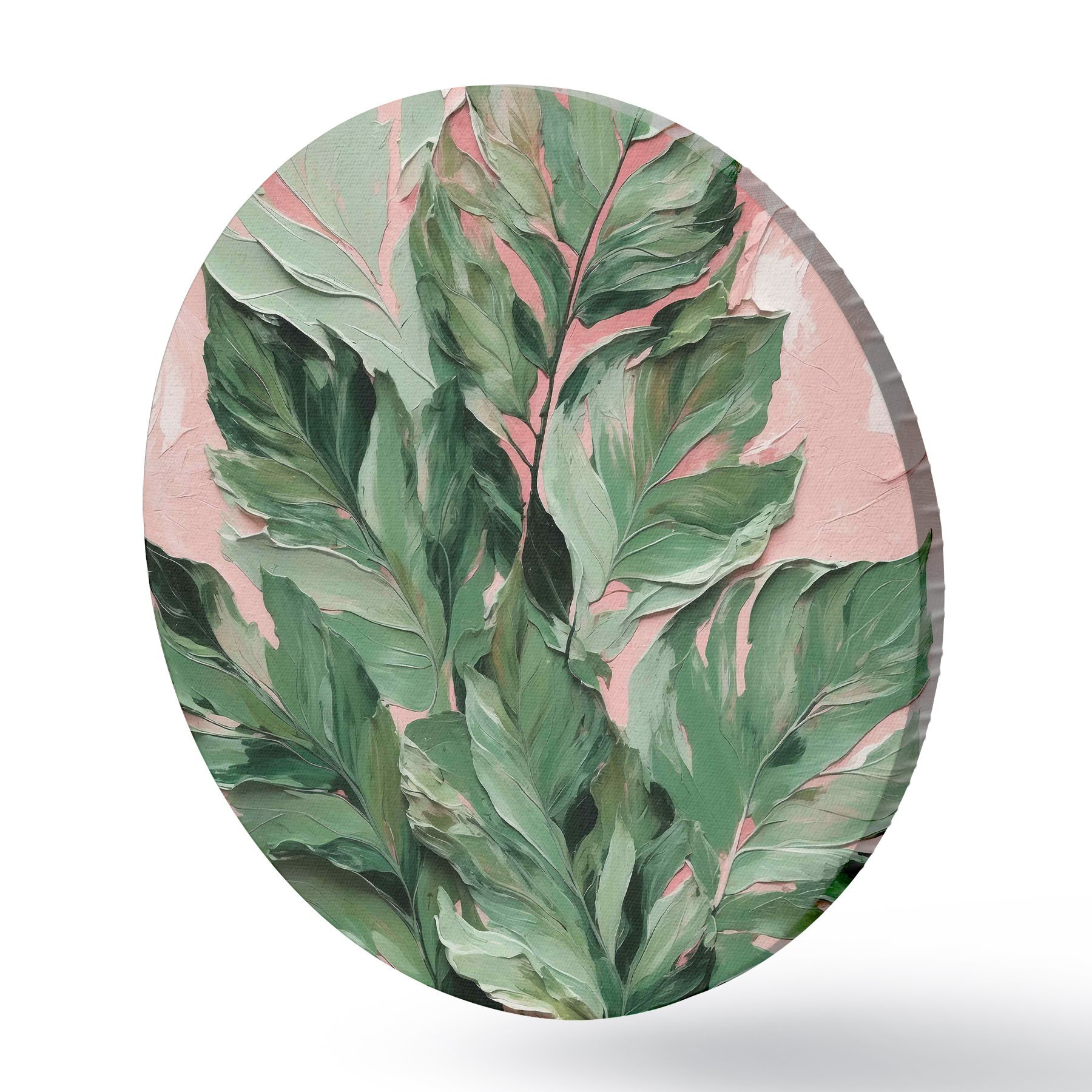 Picturi rotunde Imagine de frunze pe un fundal roz Nr r38307
