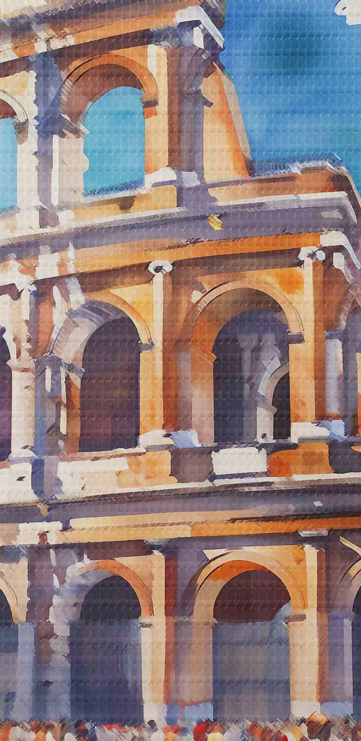 Picturi rotunde Acuarelă a unei clădiri mari cu multe arce Nr r38326