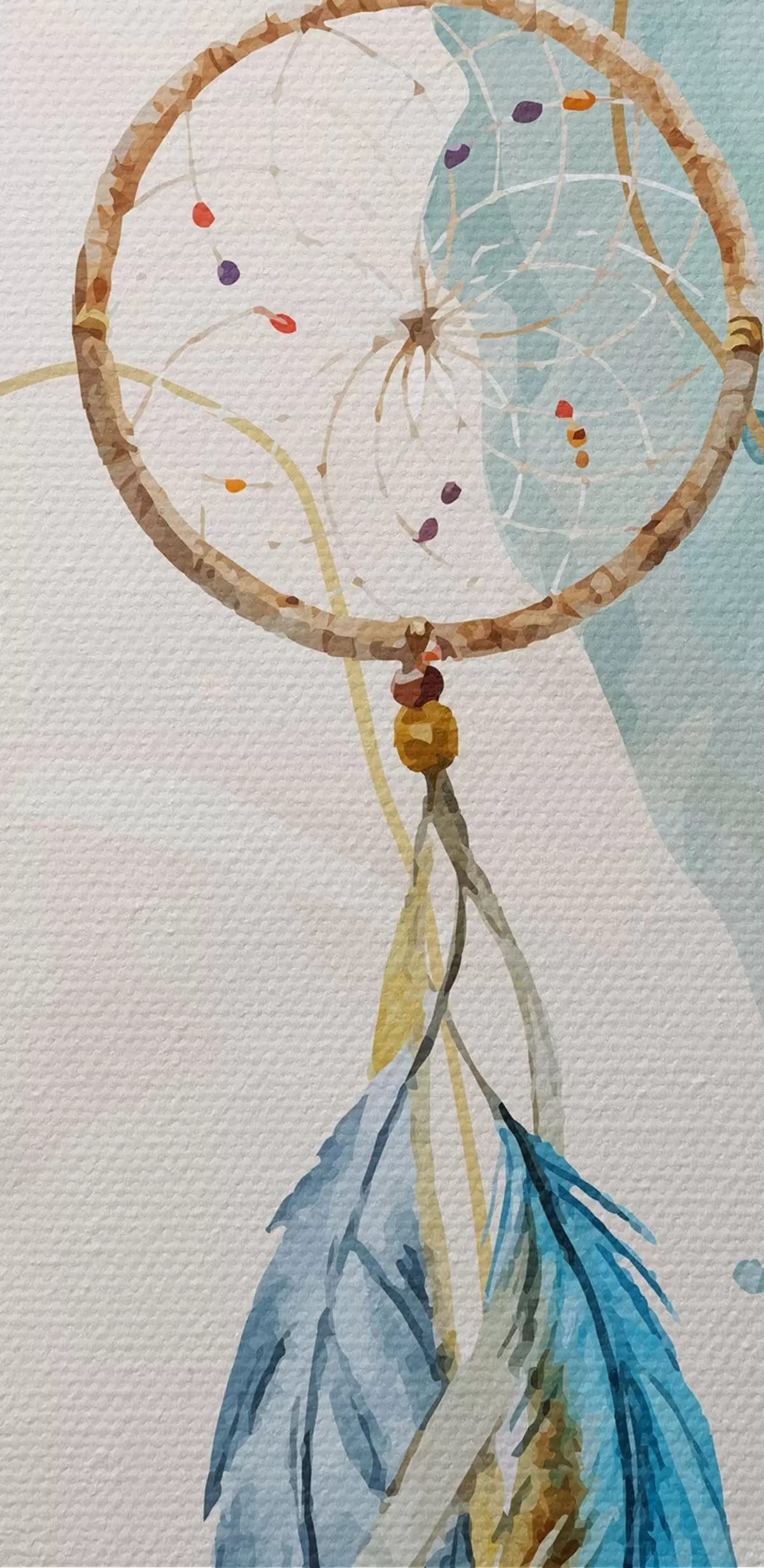 Picturi rotunde acuarelă, prinzător de vise, pene, pastel r38330