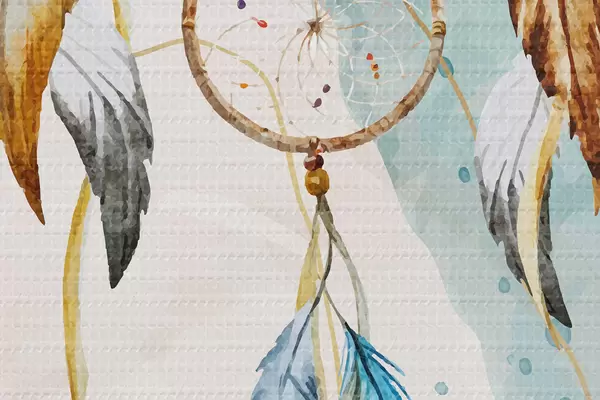 Picturi rotunde acuarelă, prinzător de vise, pene, pastel r38330