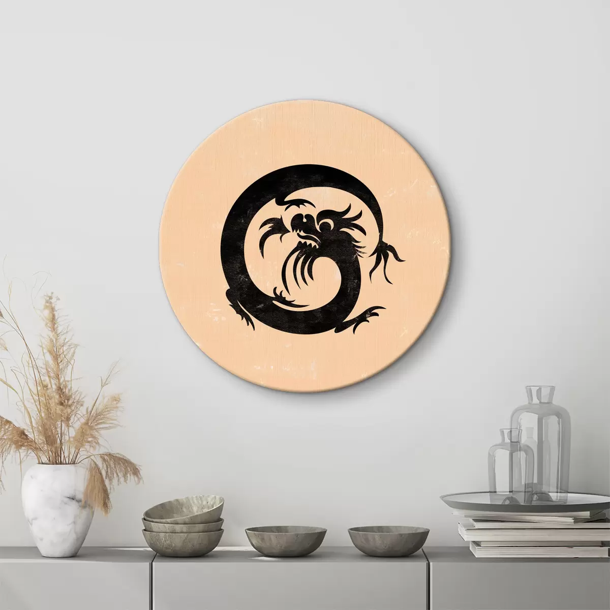 Picturi rotunde Dragon negru cu coadă lungă Nr r38339