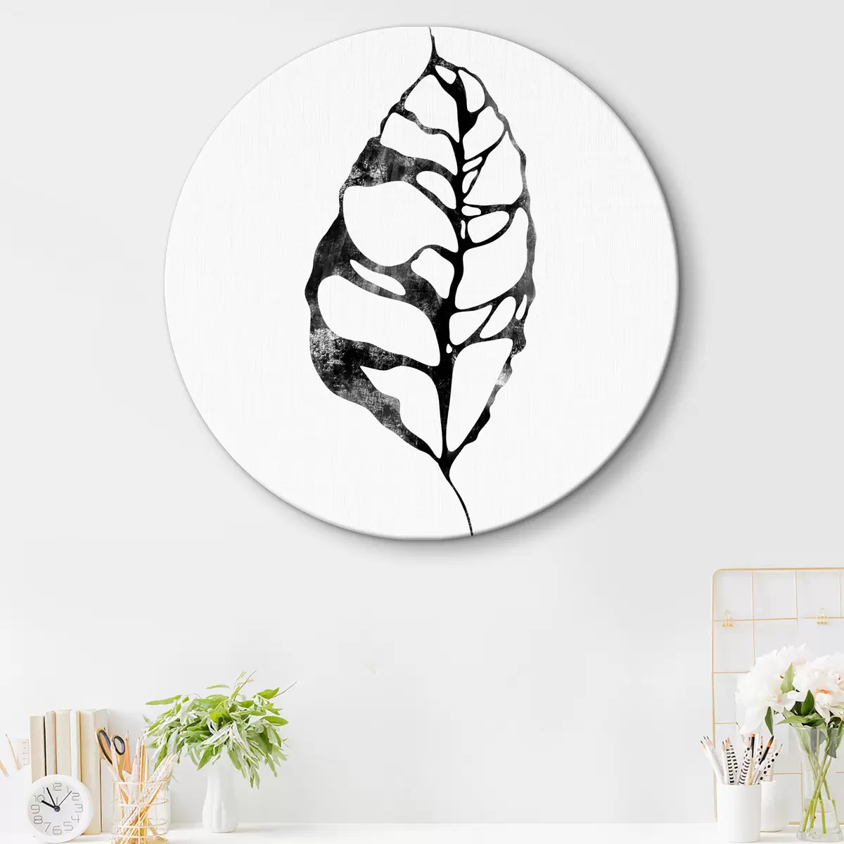 Picturi rotunde Foaie în alb și negru r38344