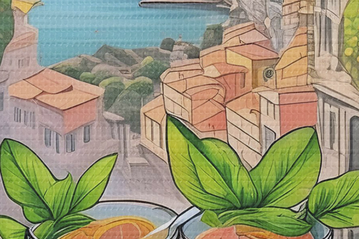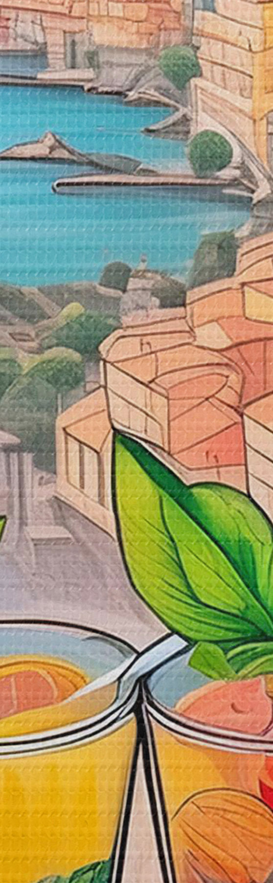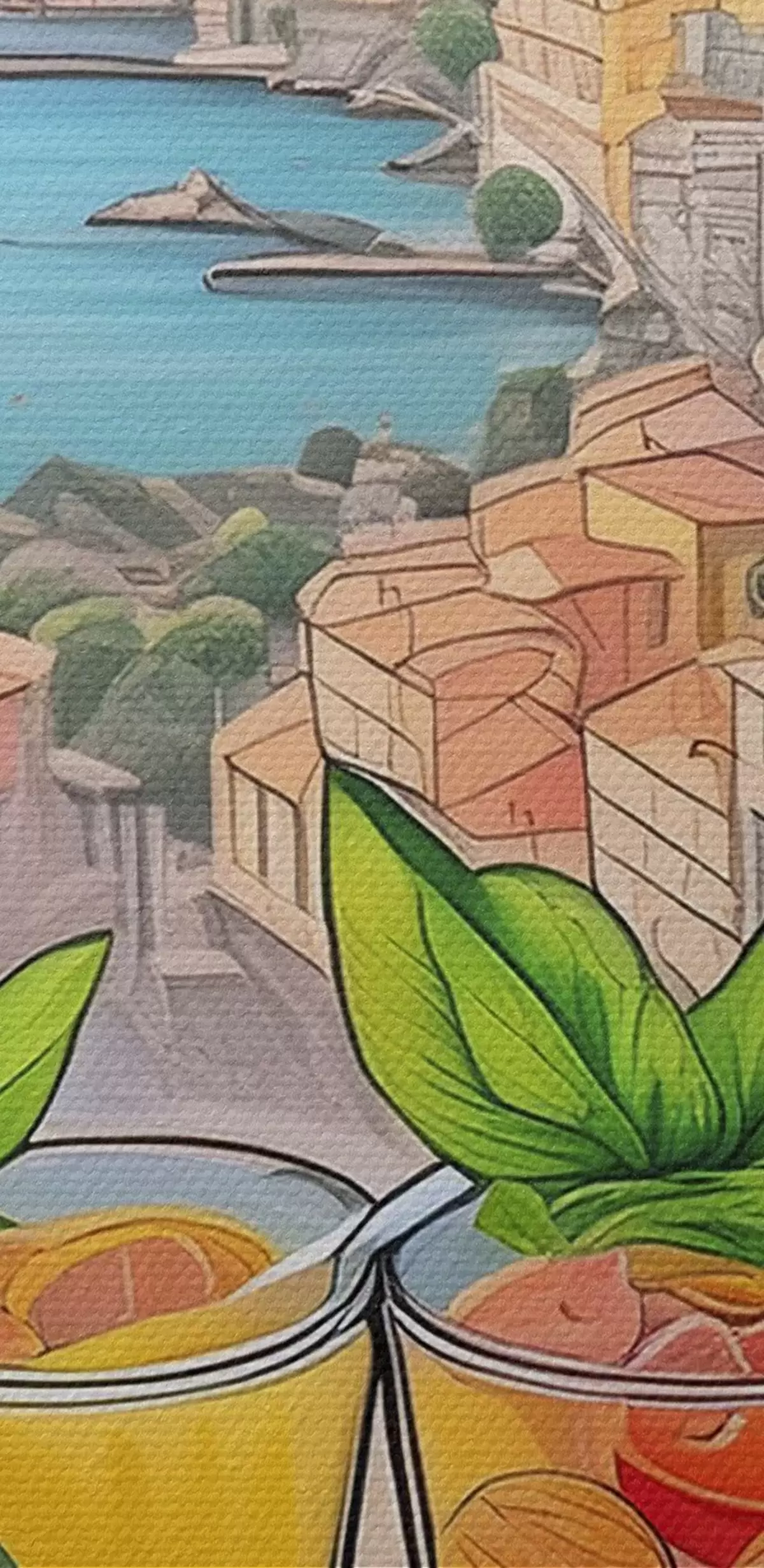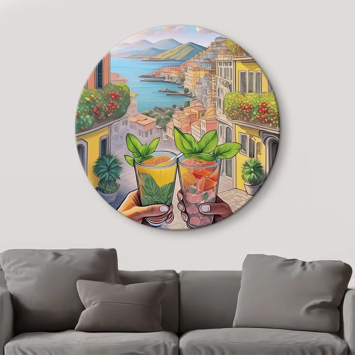 Picturi rotunde Oraș italian, coasta mării, cocktailuri, vocație, arhitectură, vară, acuarelă Nr r38392