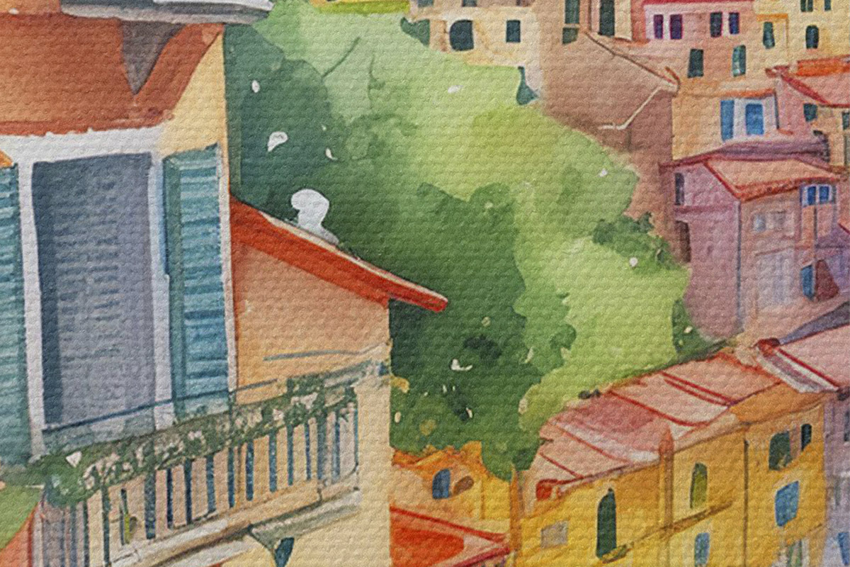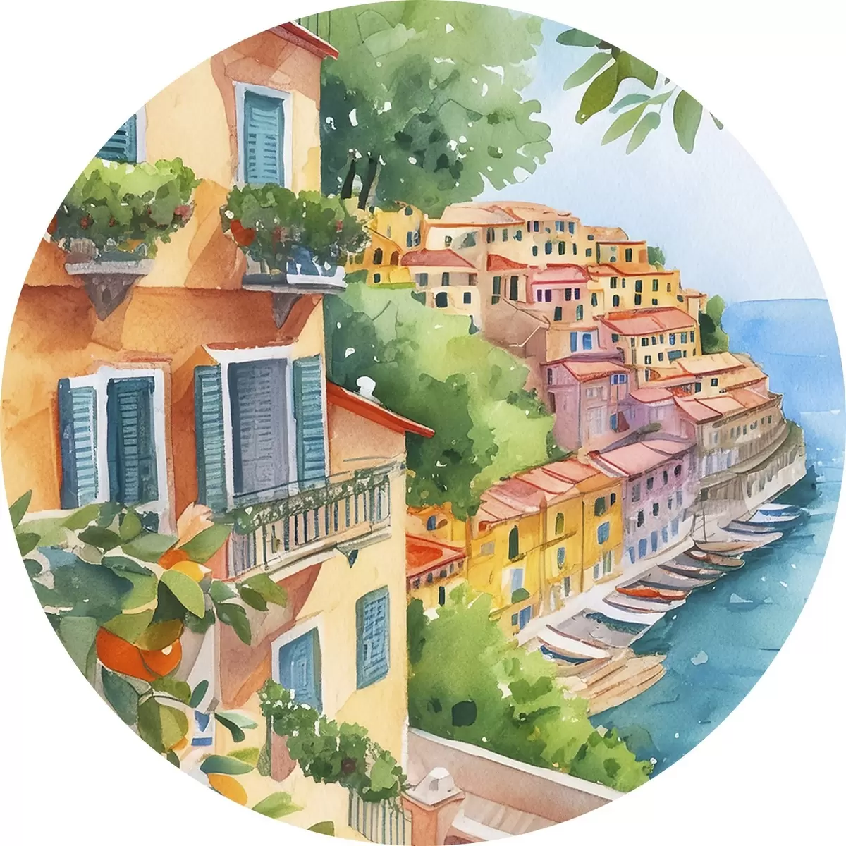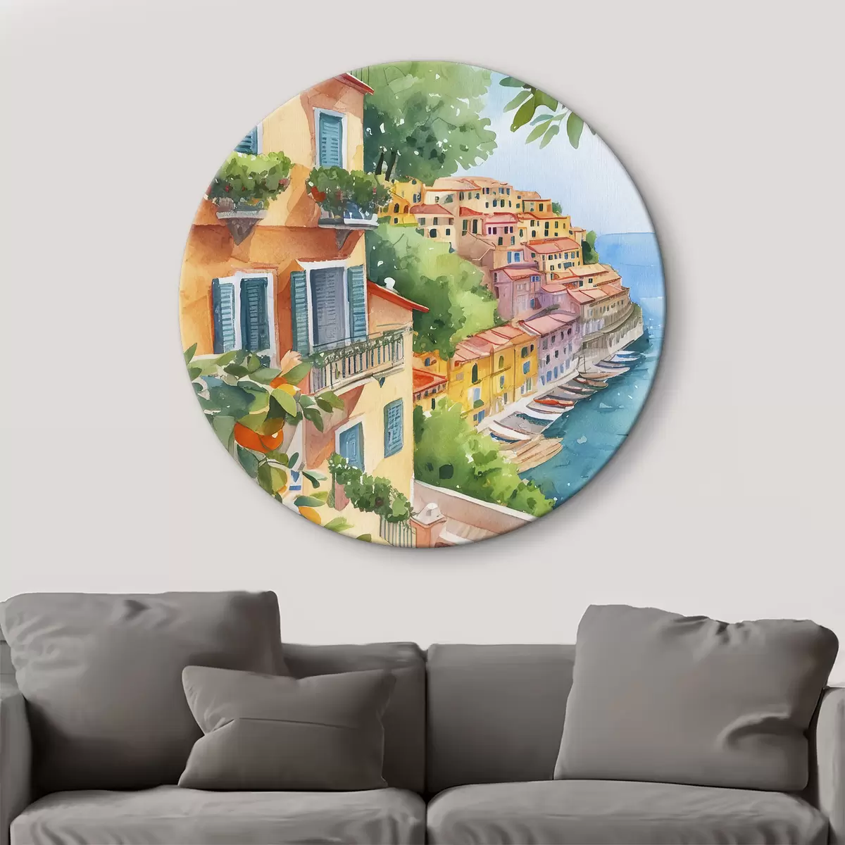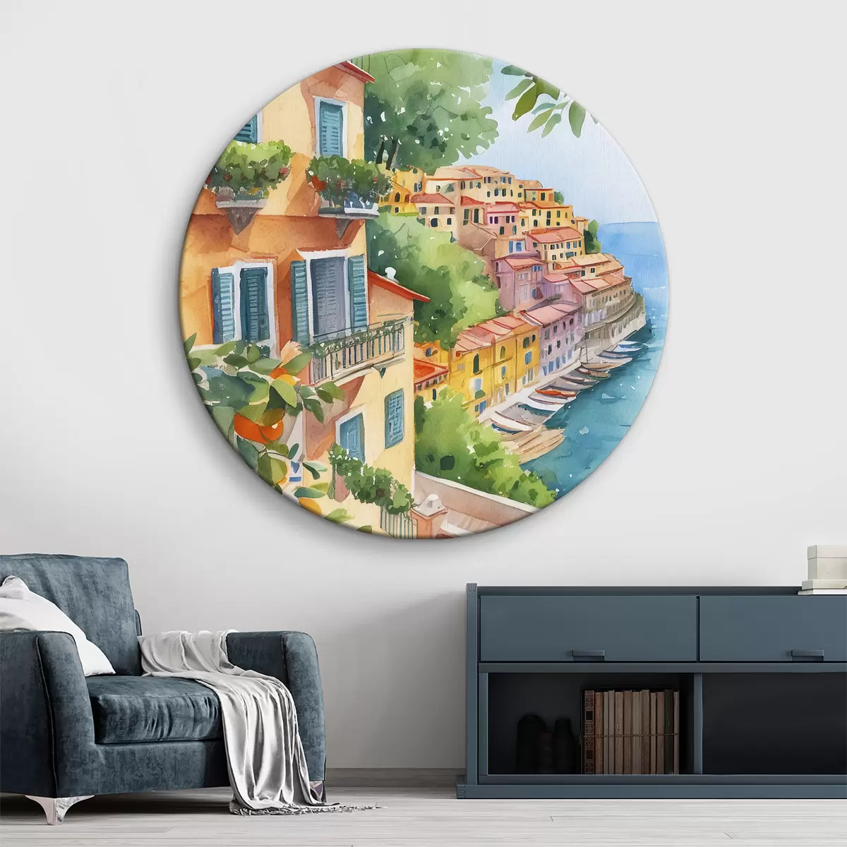 Picturi rotunde Arhitectura orașului italian, coasta Amalfi, vară, acuarelă, lămâiță r38393