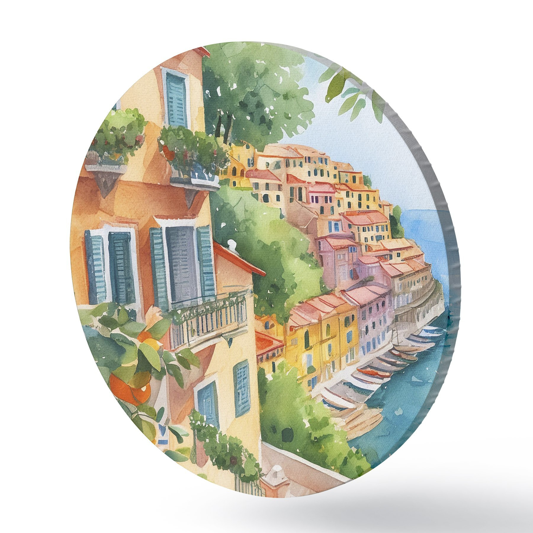 Picturi rotunde Arhitectura orașului italian, coasta Amalfi, vară, acuarelă, lămâiță Nr r38393