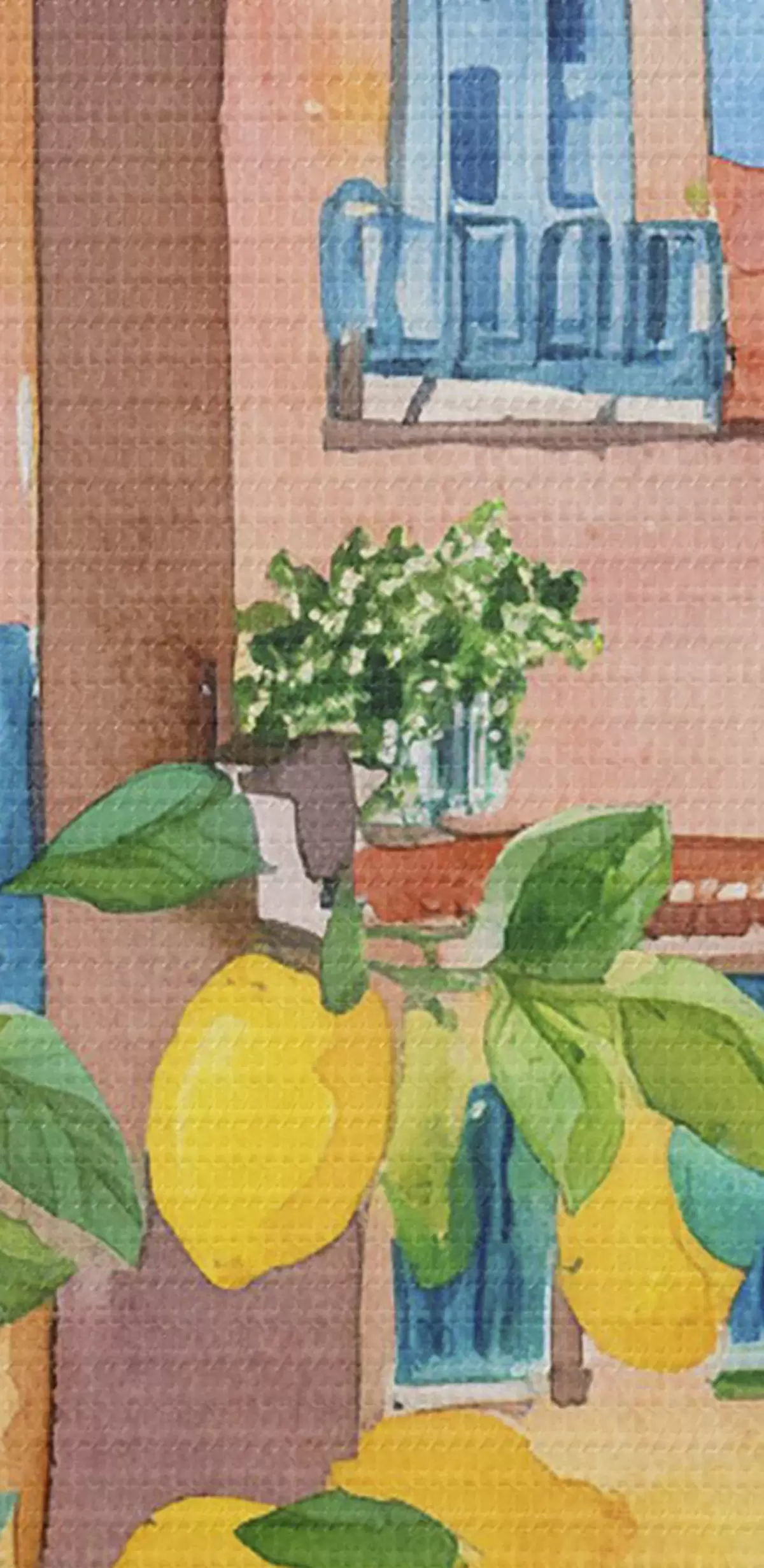 Picturi rotunde Arhitectura orașului italian, coasta mării, vară, acuarelă, copac de lămâie r38395