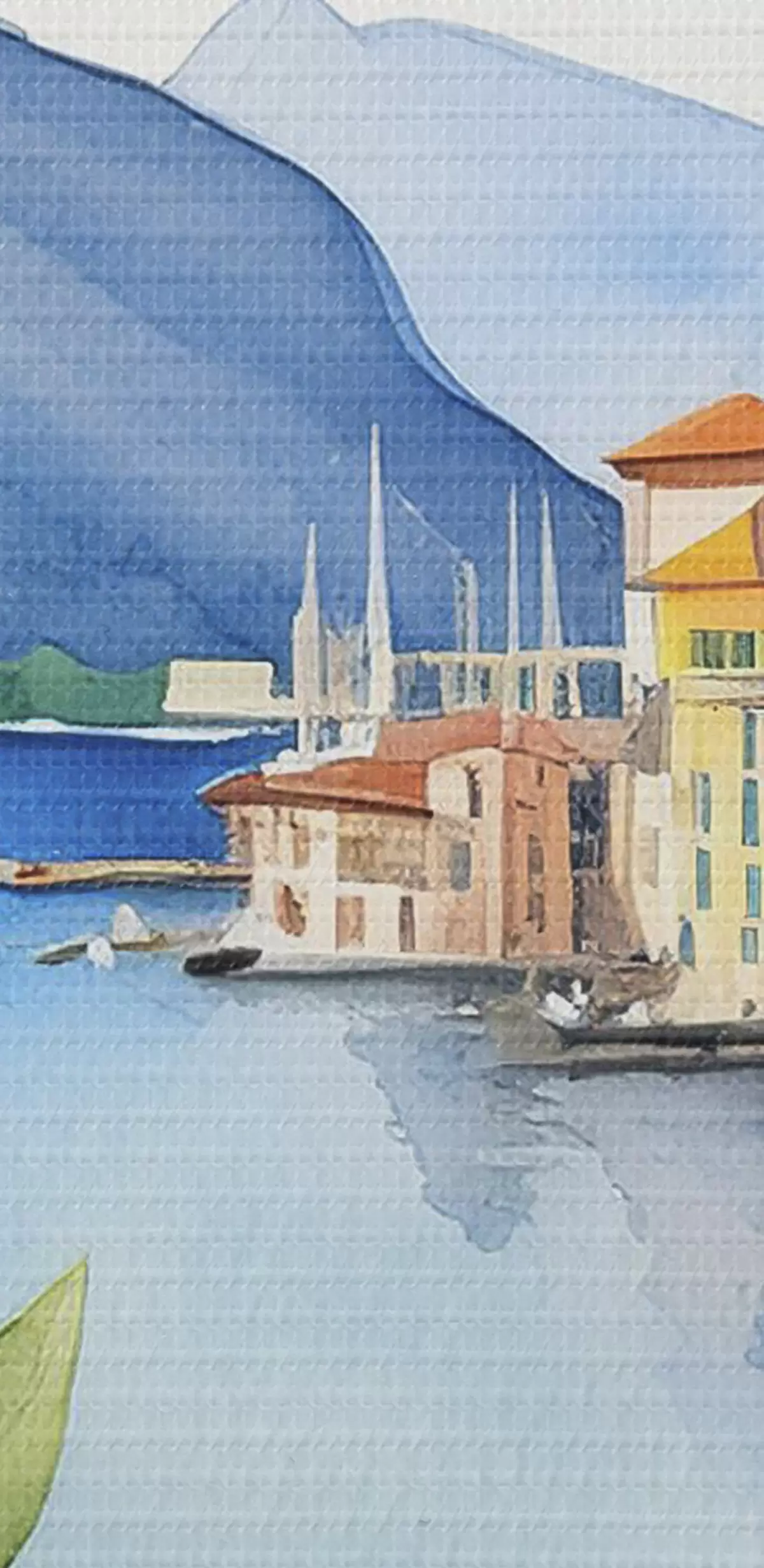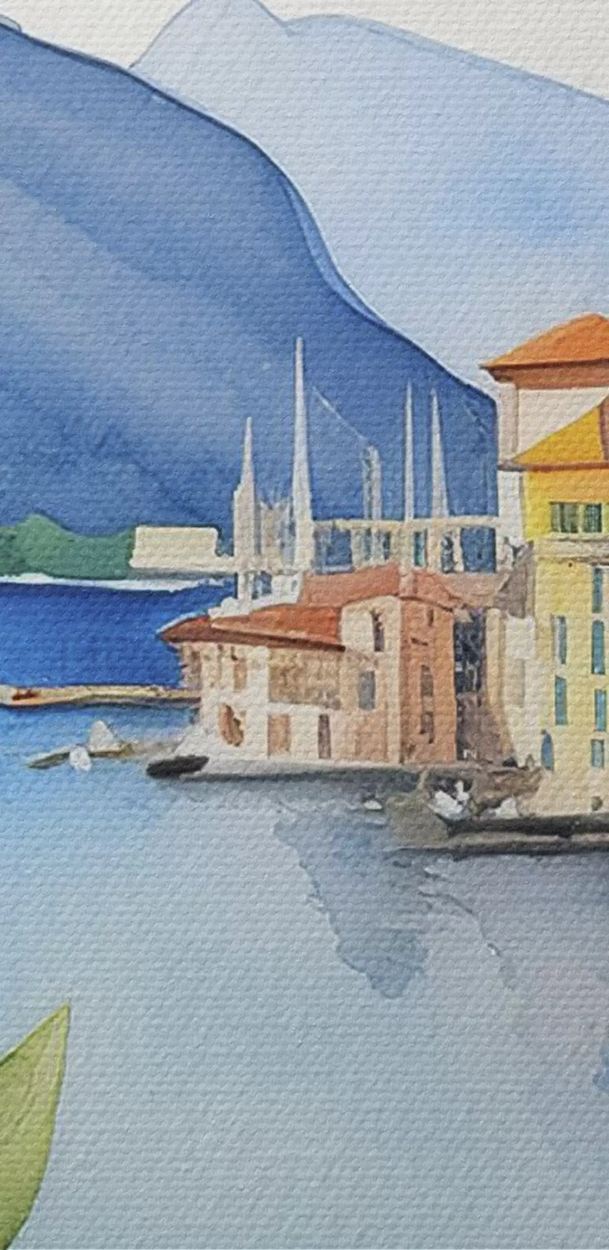 Picturi rotunde Lac italian, vară, acuarelă, peisaj natural, lămâi, arhitectura orașului r38397