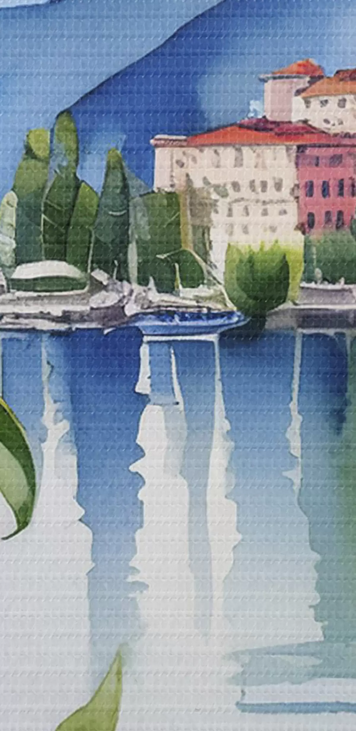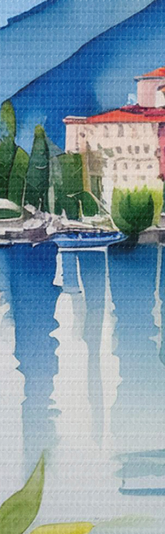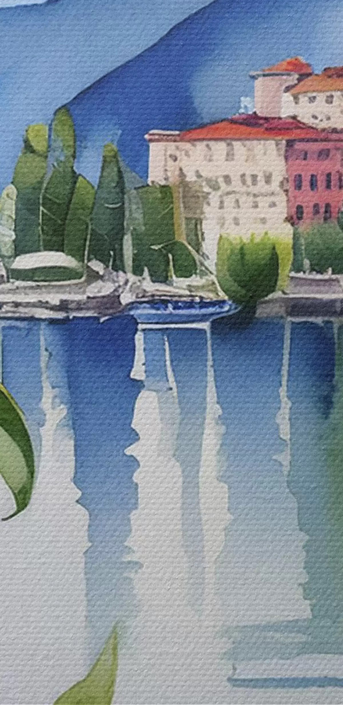 Picturi rotunde Lacul Como, acuarelă, Italia, vară, munți, lămâiță, mare, oraș vechi Nr r38398