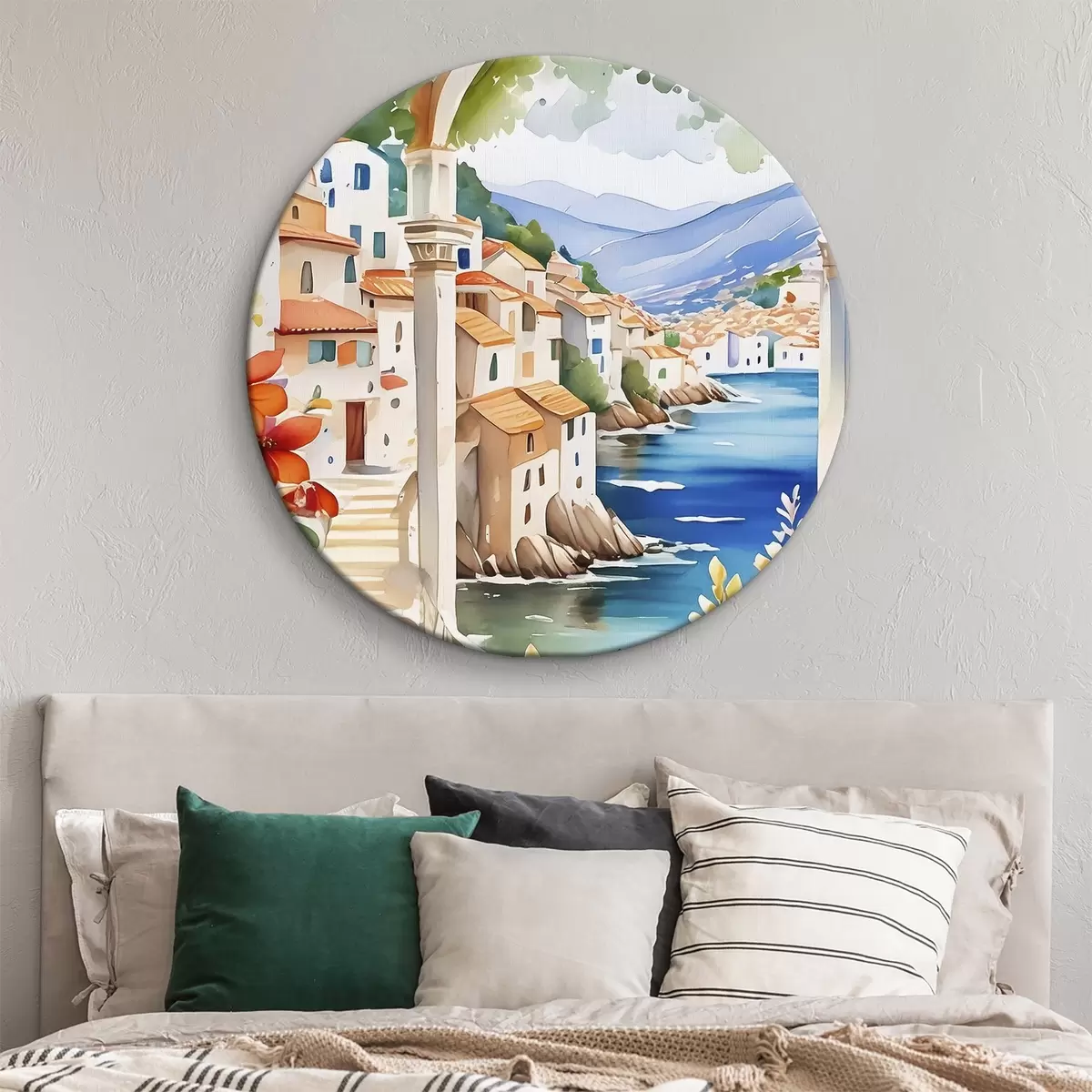 Picturi rotunde Imagine a unui oraș cu un râu și flori Nr r38406