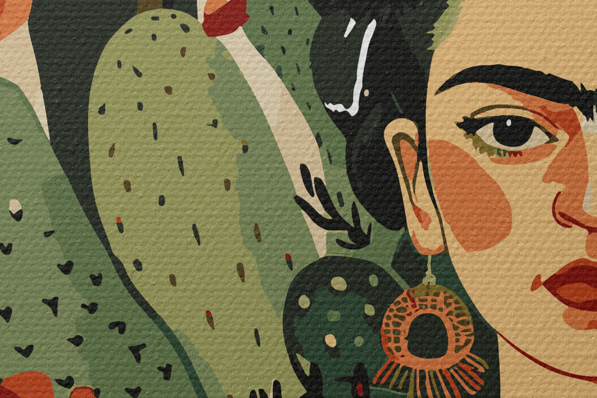 Picturi rotunde Frida pe fundalul unui model de cactus r38415