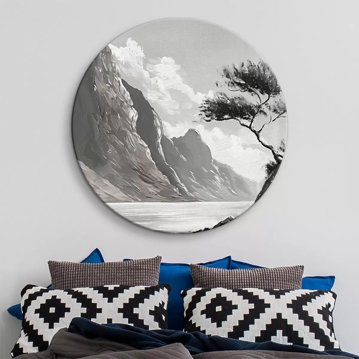 Picturi rotunde Plajă cu un copac și un corp de apă Nr r38421