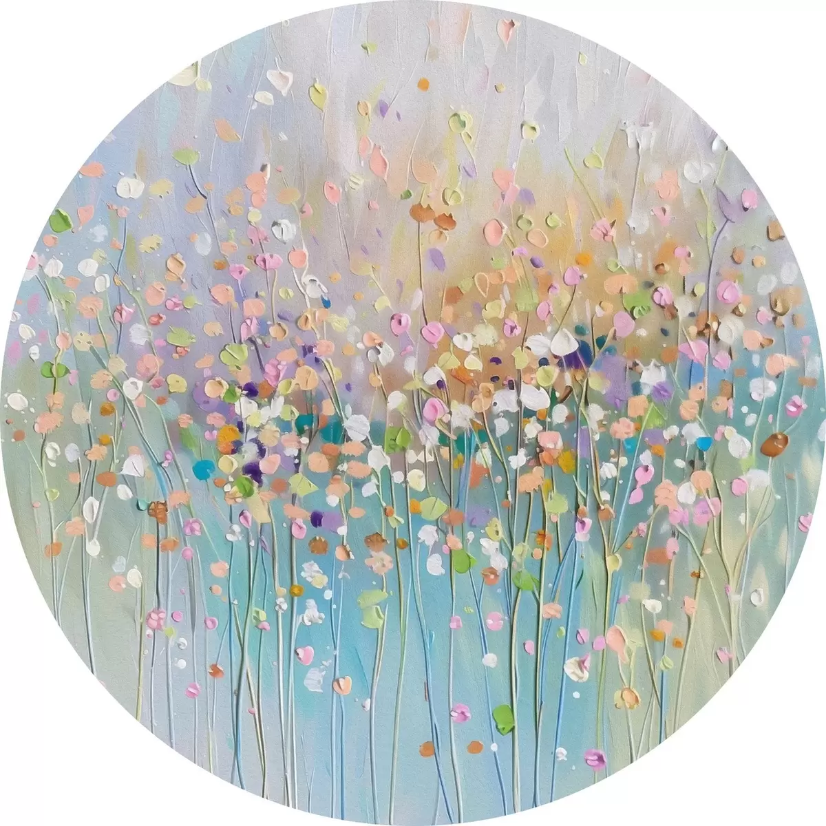 Picturi rotunde Colorat flori uscate imprimate textura Nr r38426