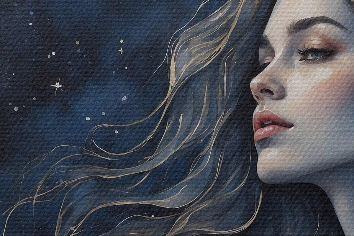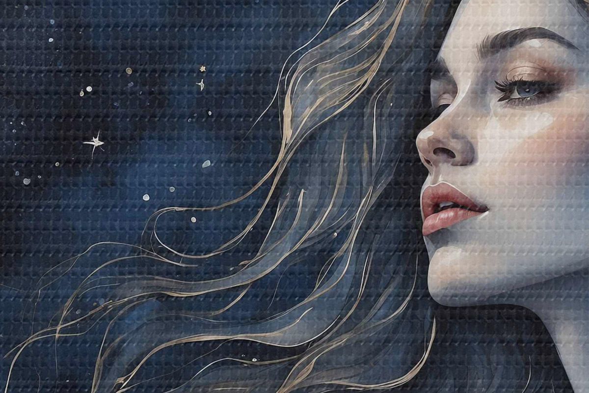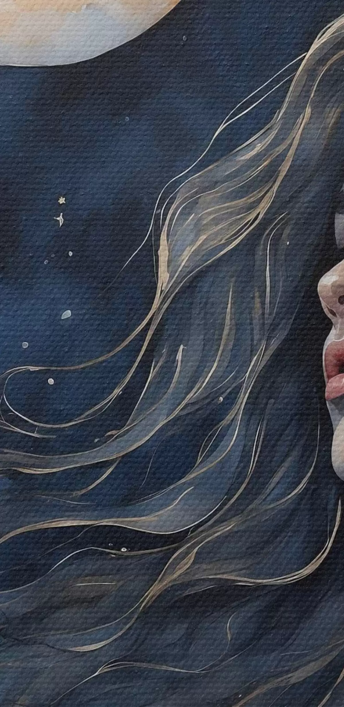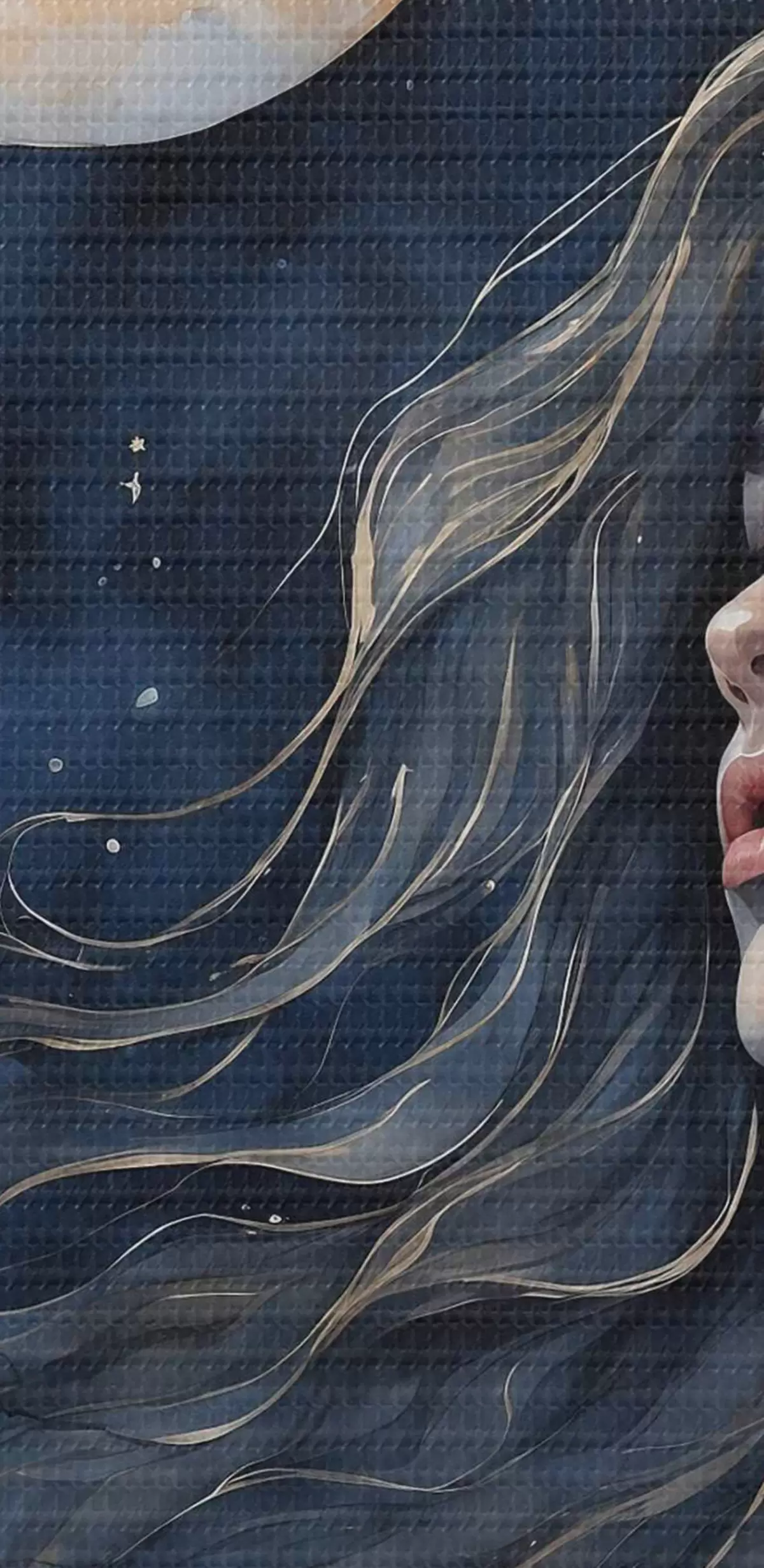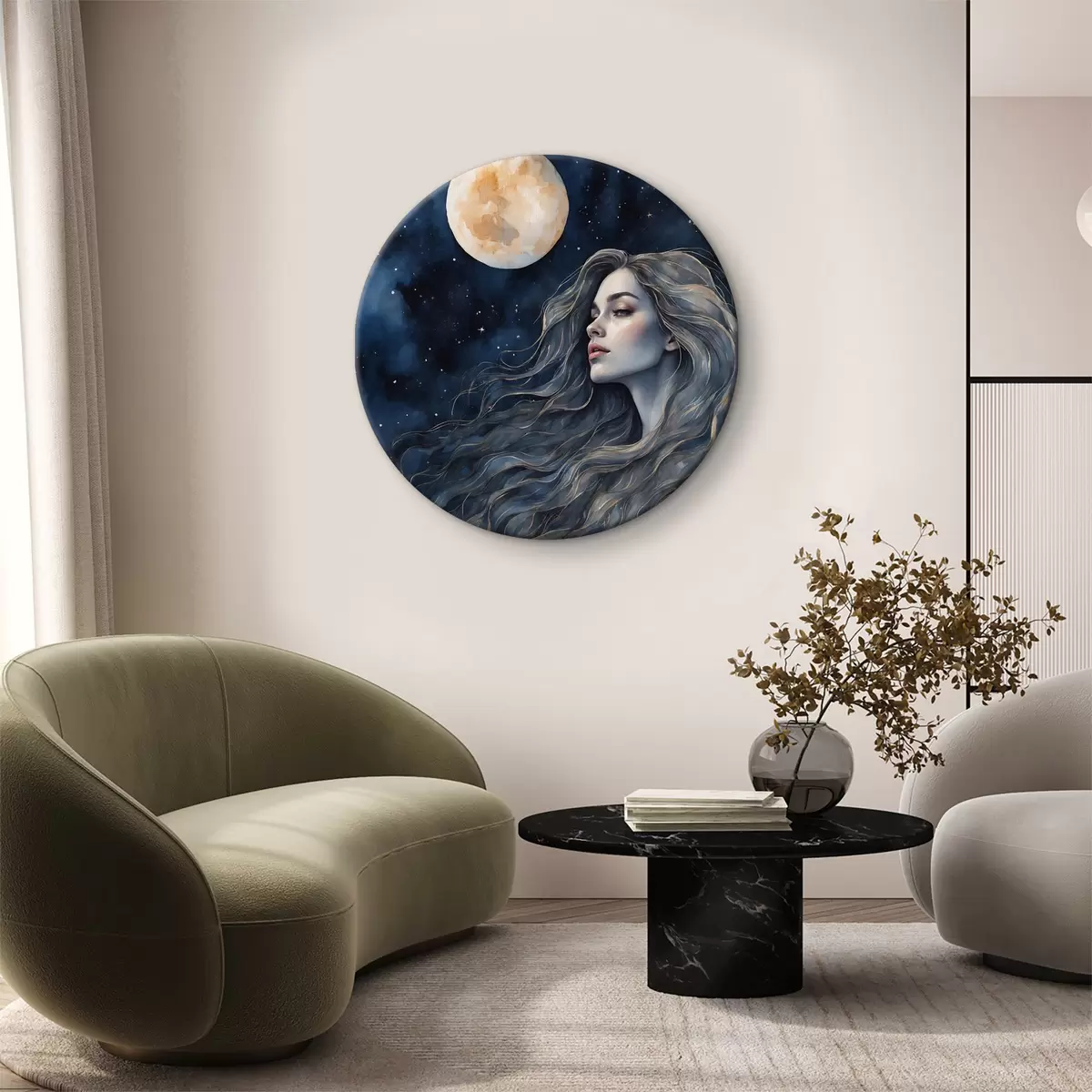 Picturi rotunde Femeie cu părul lung și luna Nr r38438