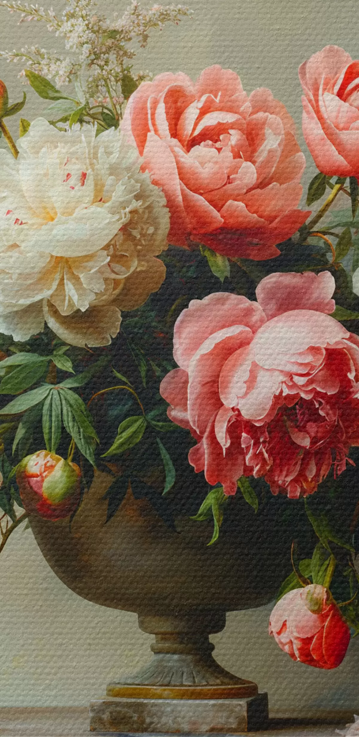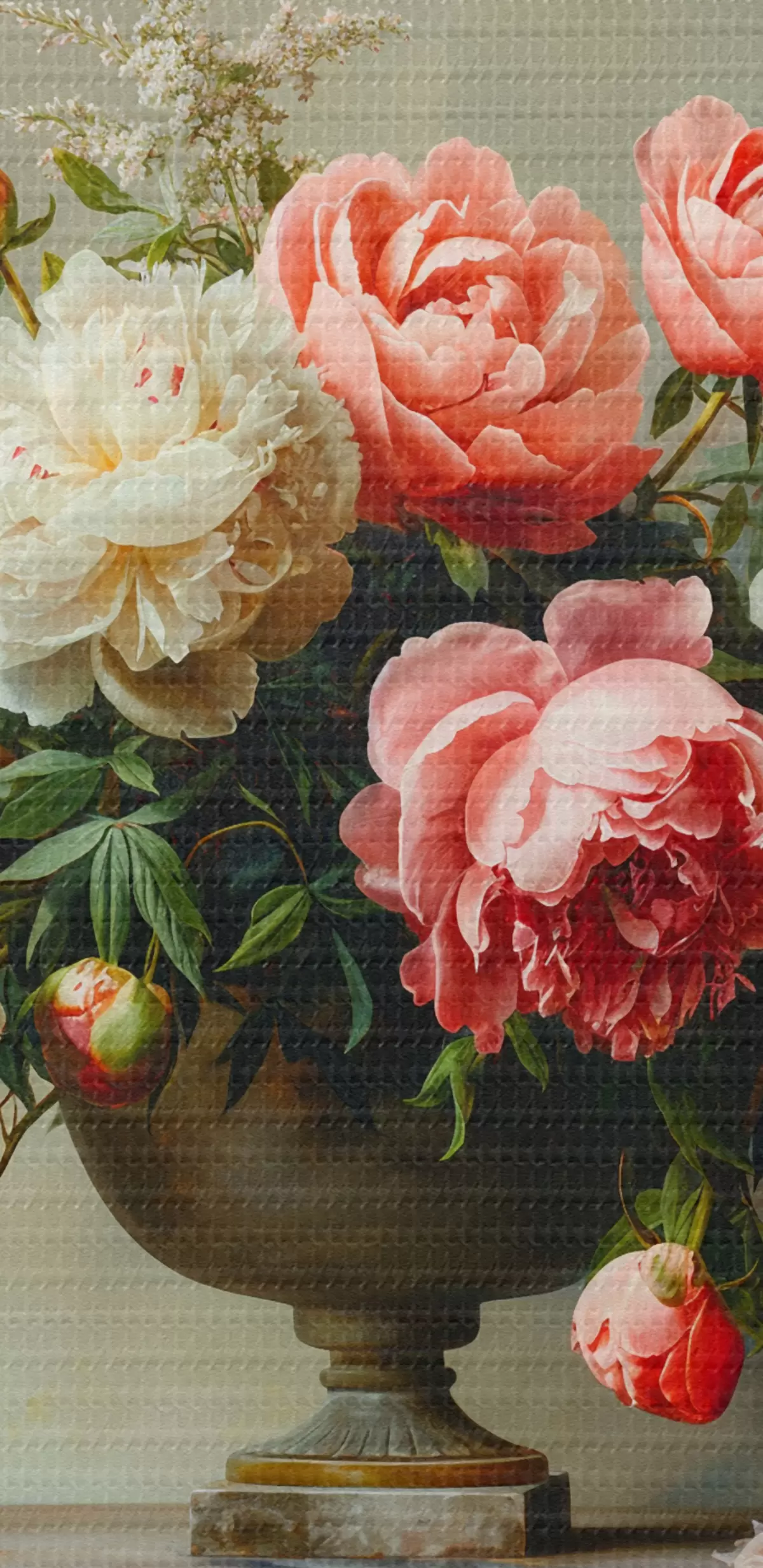 Picturi rotunde Buchet luxuriant de bujori și o vază neagră r38460