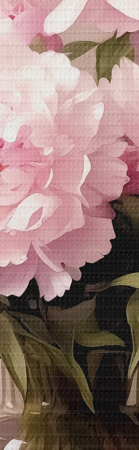 Picturi rotunde Peonii roz într-o vază de sticlă pe un fundal negru, imitație pictură în ulei, flori Nr r38482