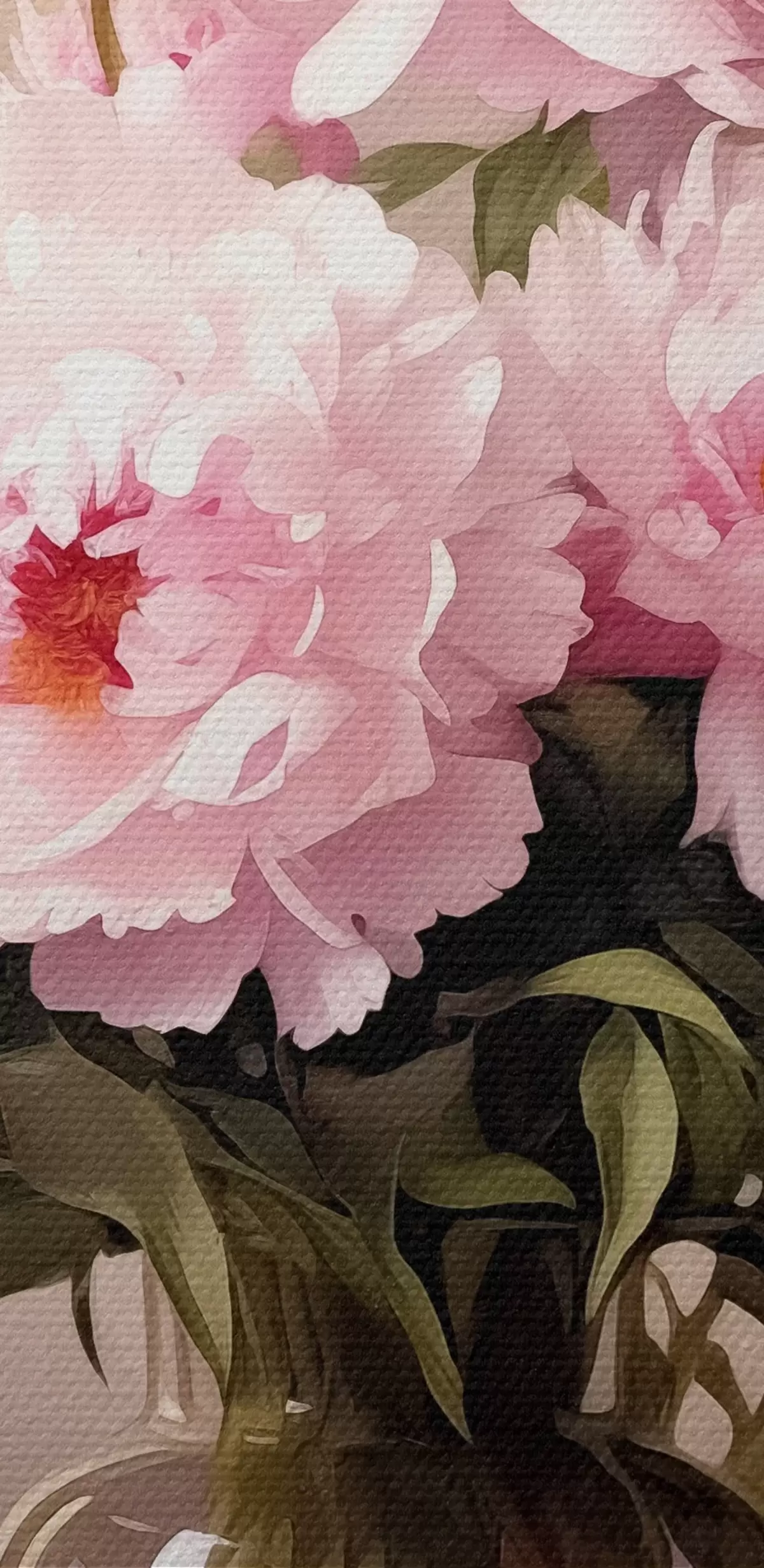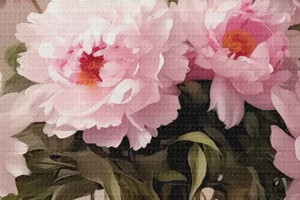 Picturi rotunde Peonii roz într-o vază de sticlă pe un fundal negru, imitație pictură în ulei, flori Nr r38482