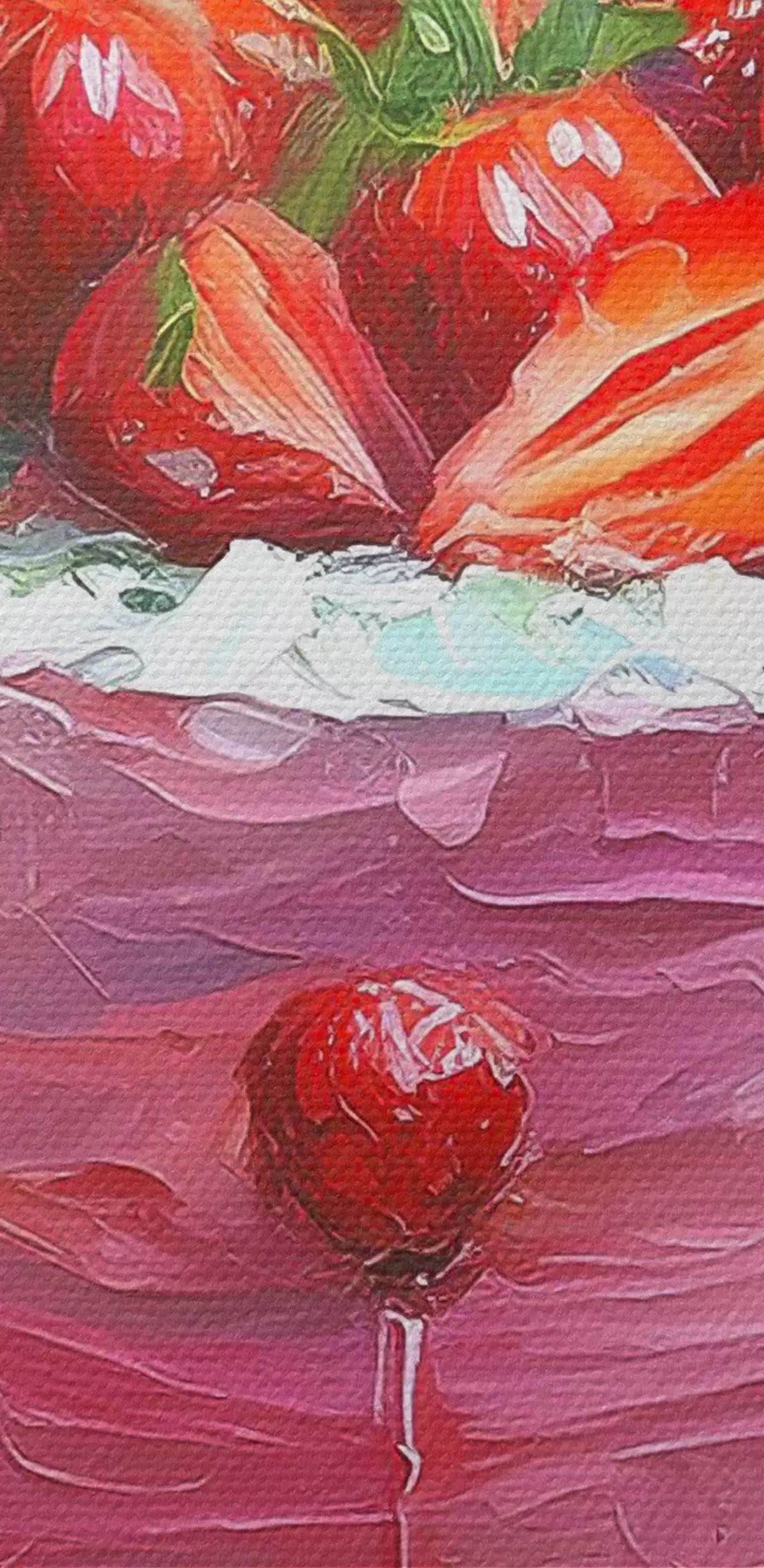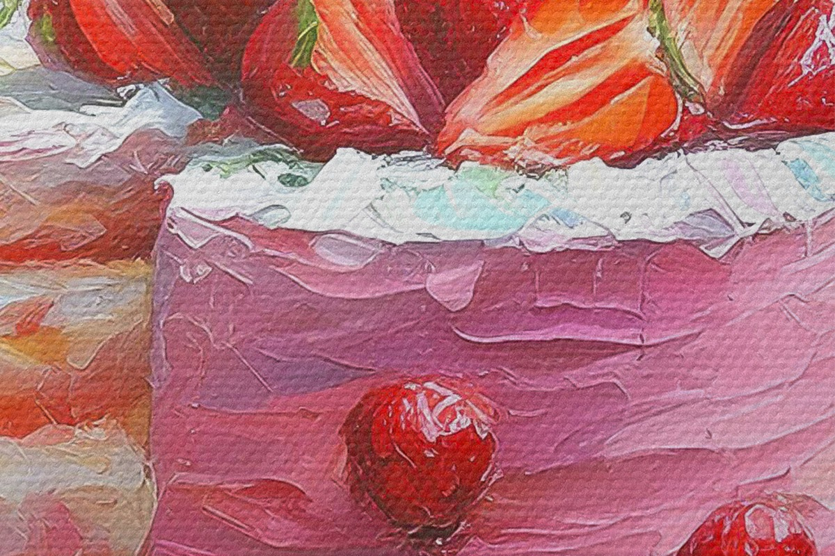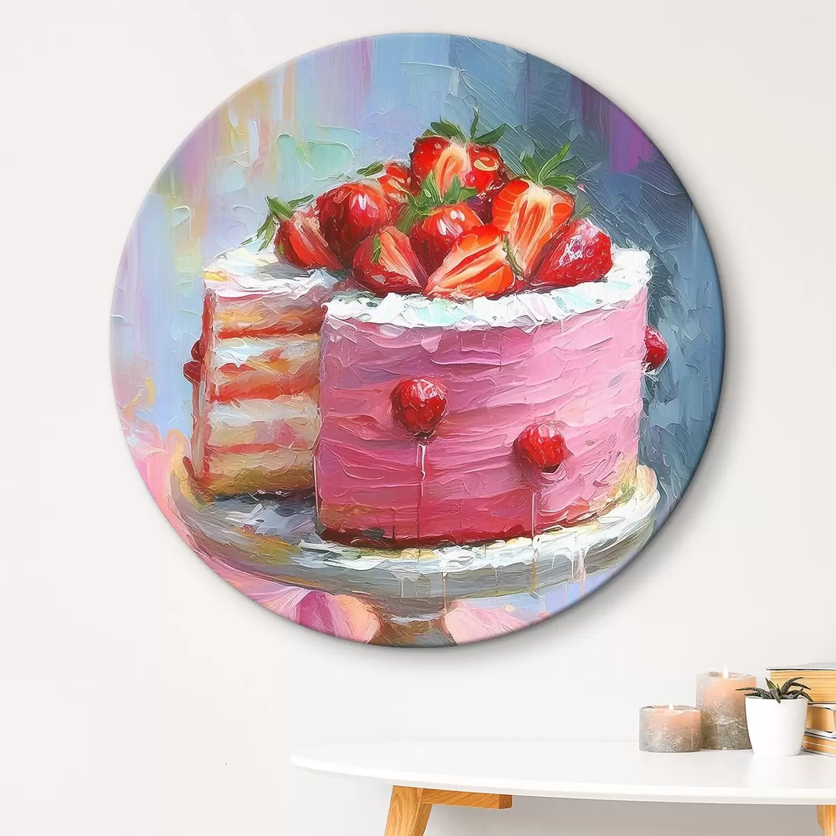 Picturi rotunde Tort de căpșuni cu cremă, vopsea în ulei, lovituri mari de perie, fructe de vară, culori roz Nr r38499