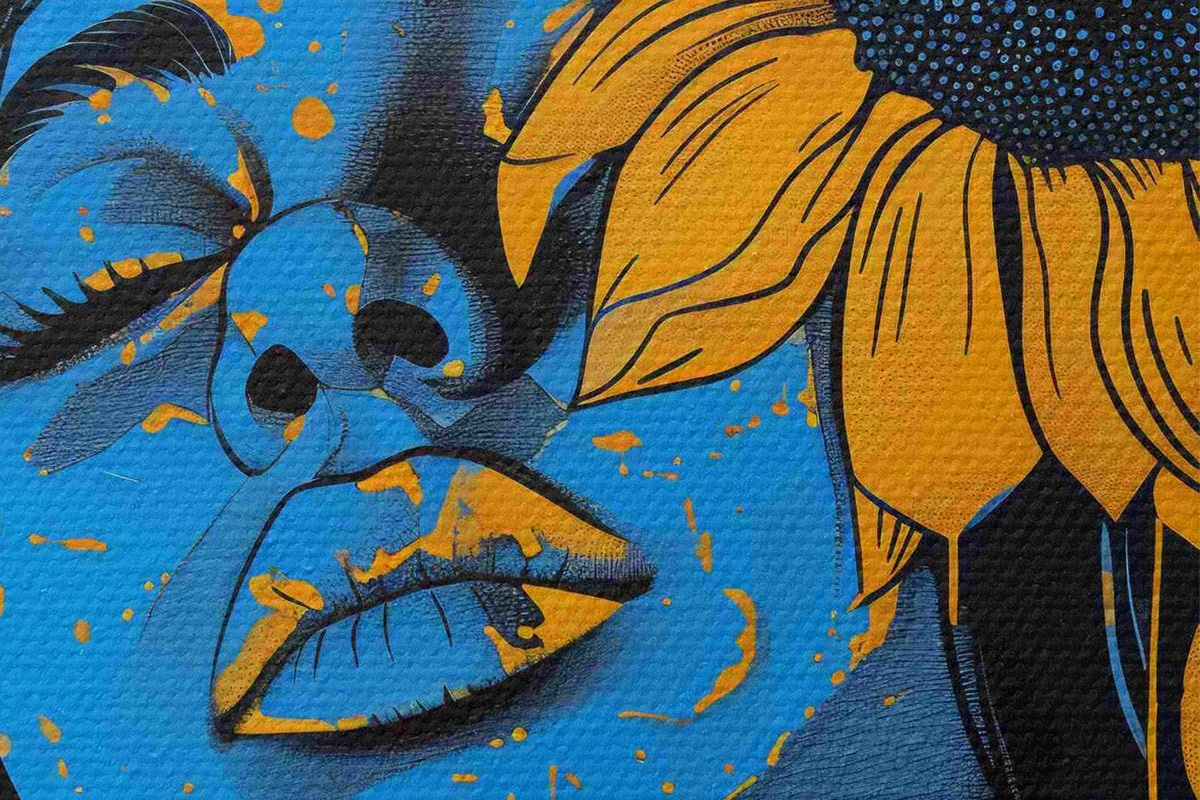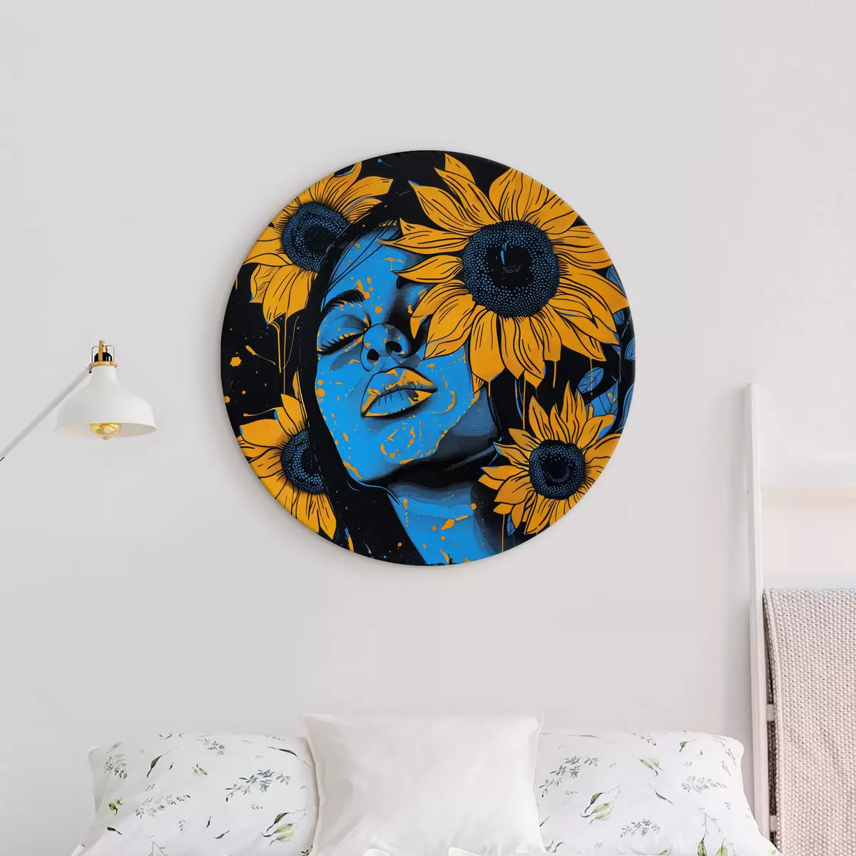 Picturi rotunde O pictură a unei femei cu floarea-soarelui Nr r38505
