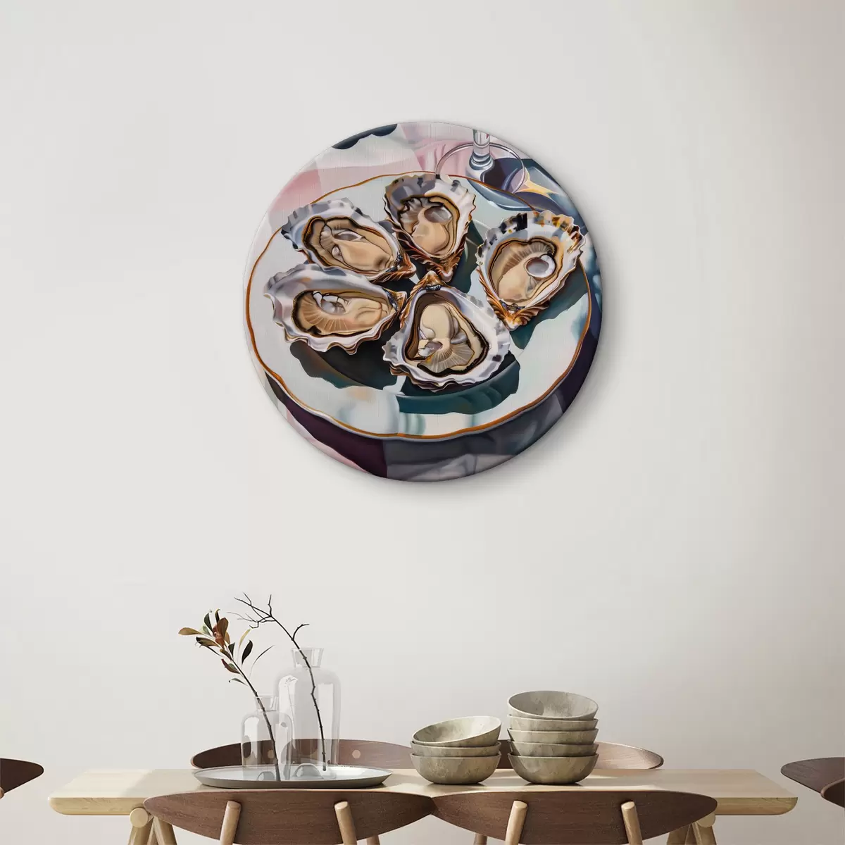 Picturi rotunde O farfurie de stridii și un pahar de vin Nr r38514