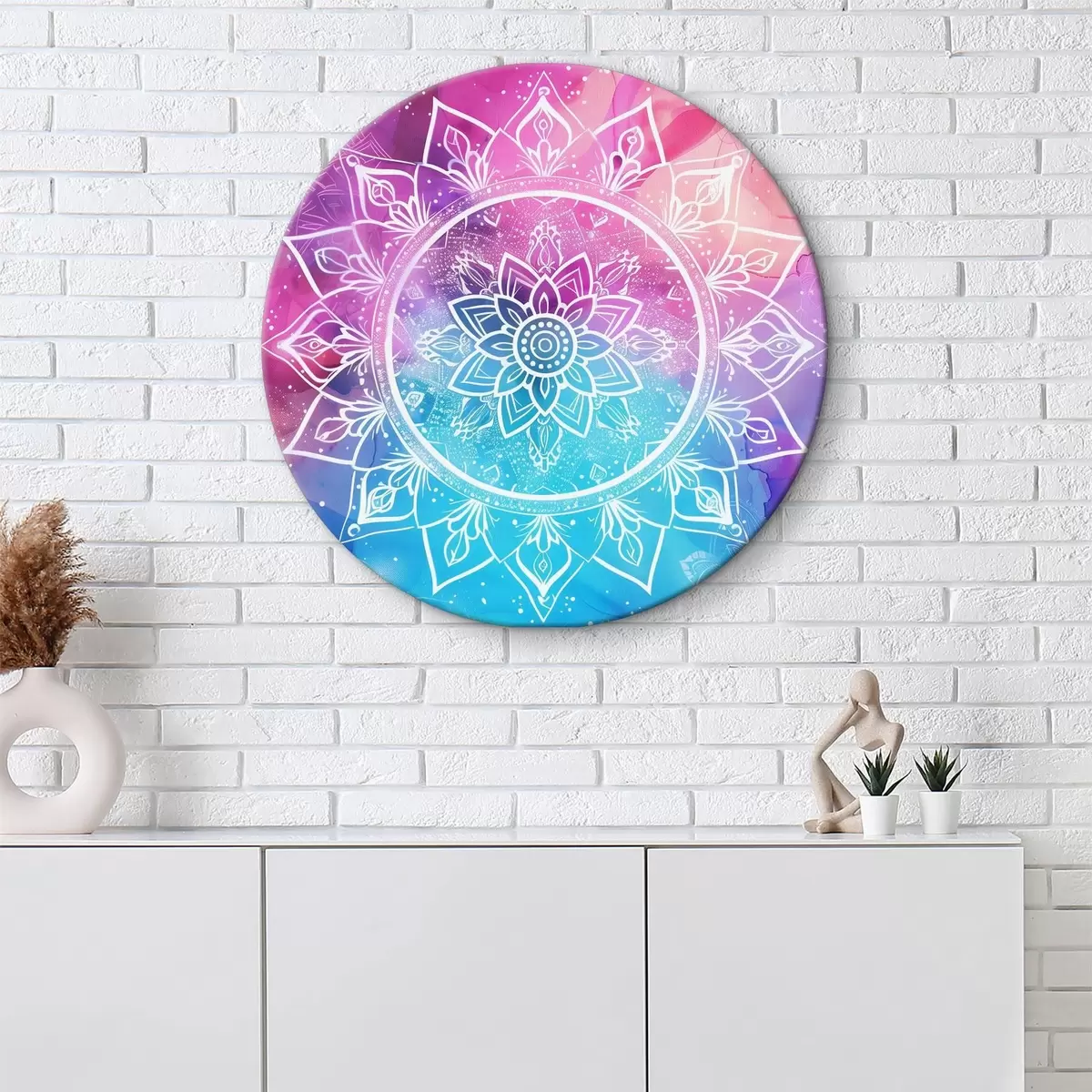 Picturi rotunde Mandala albă pe un fundal colorat r38529