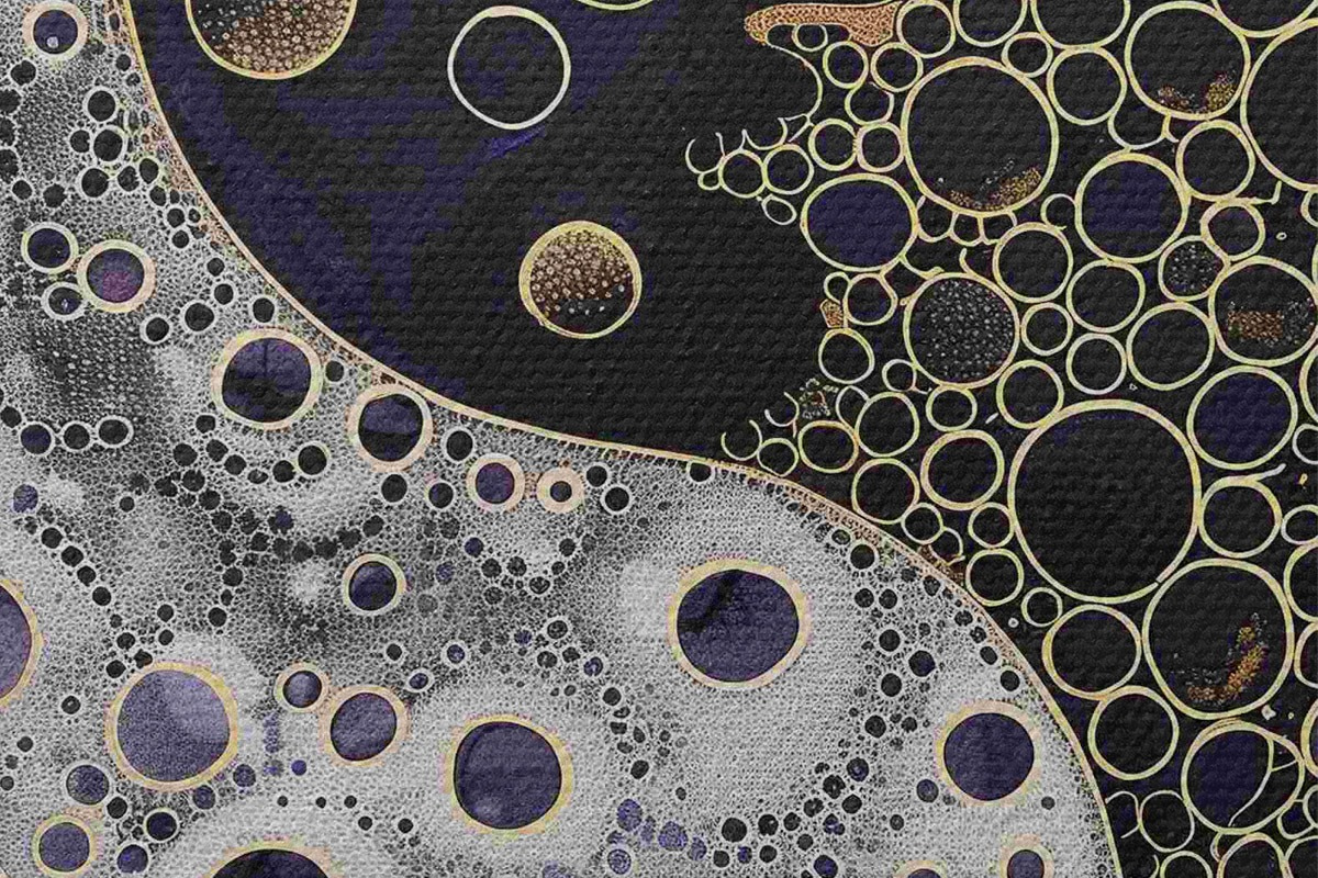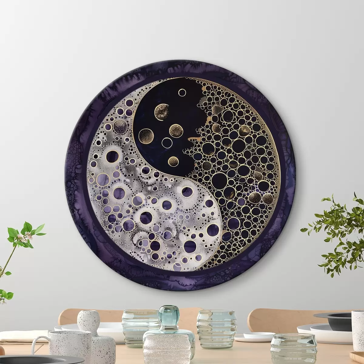 Picturi rotunde Simbol yin și yang pe fundal violet Nr r38535