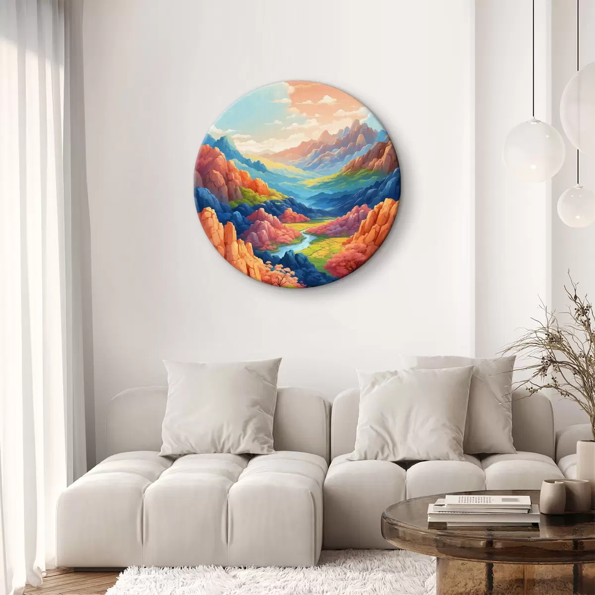 Picturi rotunde Peisaj cu munți și râu Nr r38577
