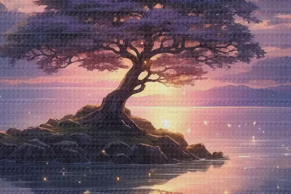 Picturi rotunde Un copac pe o mică insulă în apă Nr r38578