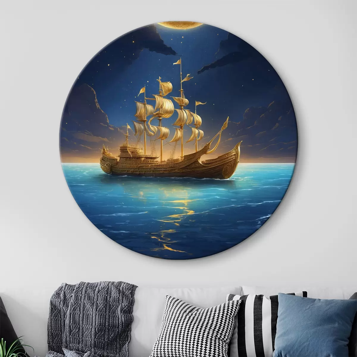 Picturi rotunde Barcă pe apă cu luna în fundal Nr r38587