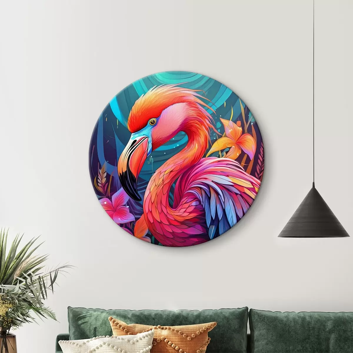 Picturi rotunde Flamingo roz colorat cu flori Nr r38609