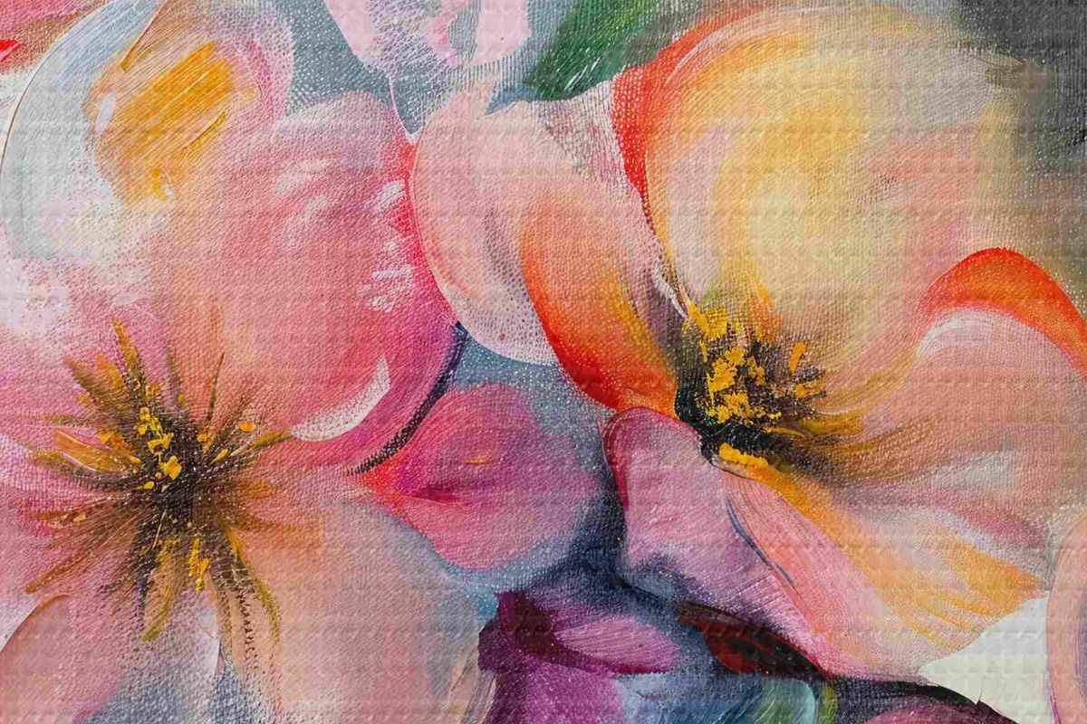 Țesătura fină a firelor de pe această pânză seamănă cu suprafața pânzelor artiștilor profesioniști.