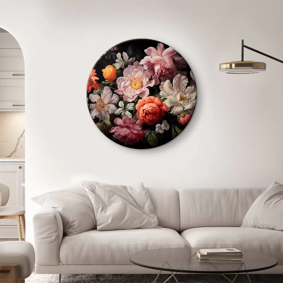 Picturi rotunde Imagine de flori pe un fundal negru Nr r38721