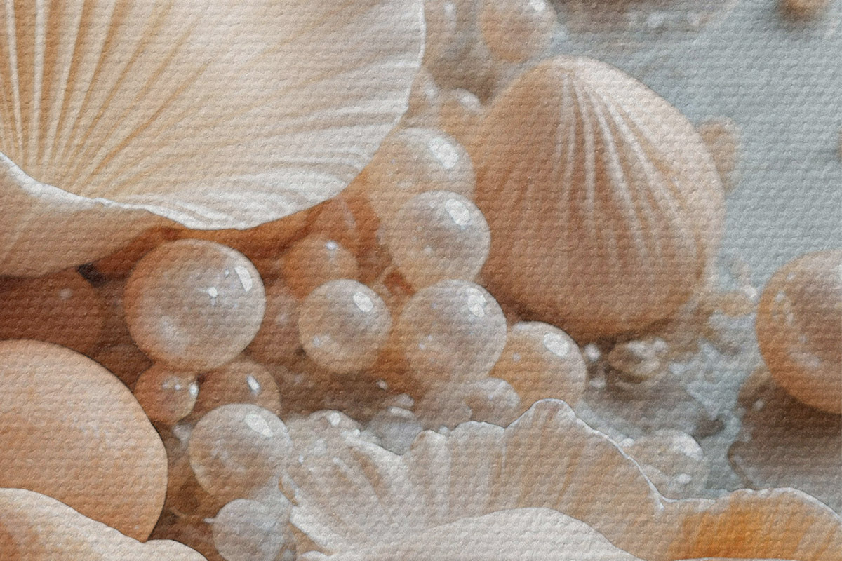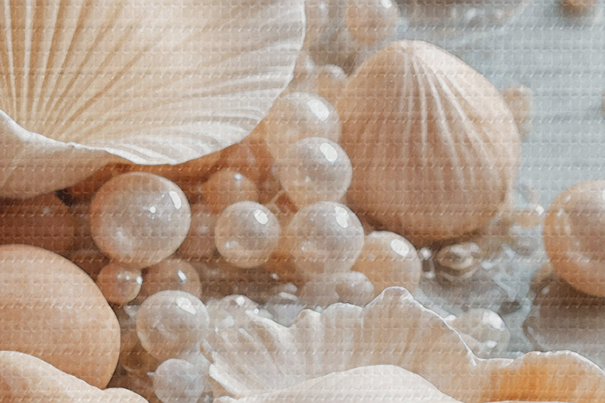 Picturi rotunde Scoici asortate și perle pe un fundal albastru deschis r38769