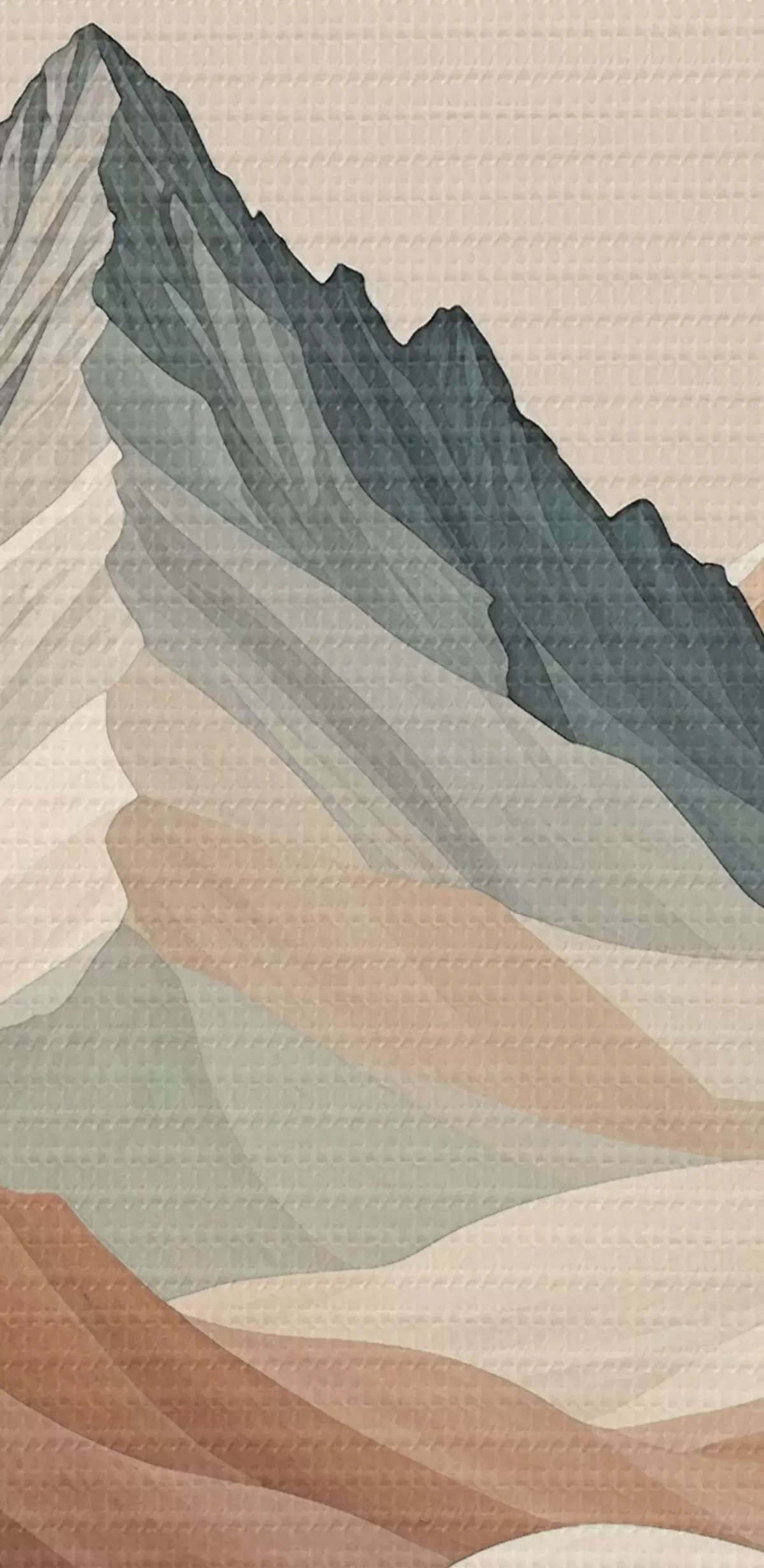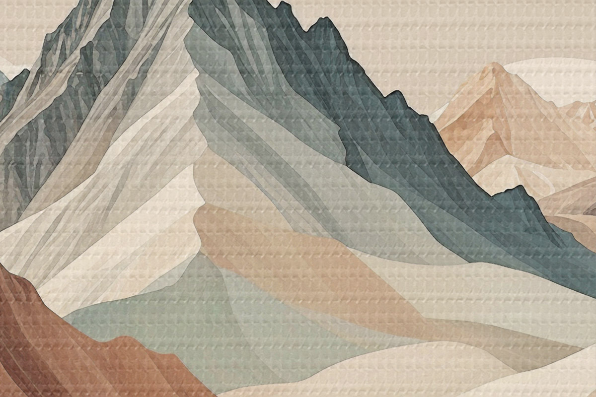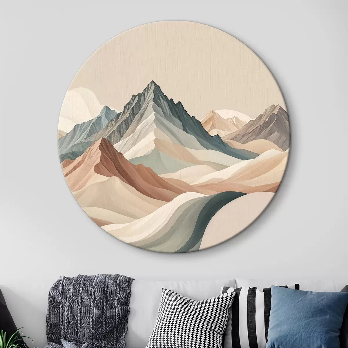 Picturi rotunde Minimalism peisaj montan cu vârfuri stâncoase și dealuri în bej Nr r38770
