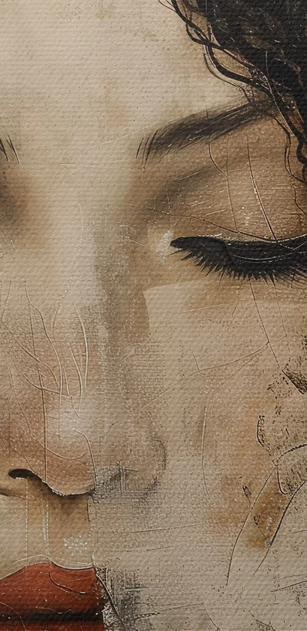 Țesătura fină a firelor de pe această pânză seamănă cu suprafața pânzelor artiștilor profesioniști.