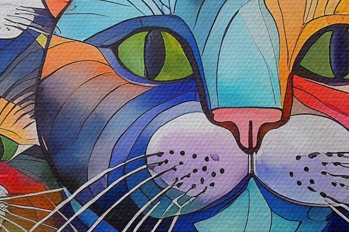Picturi rotunde Abstracție multicoloră cu pisici Nr r38814