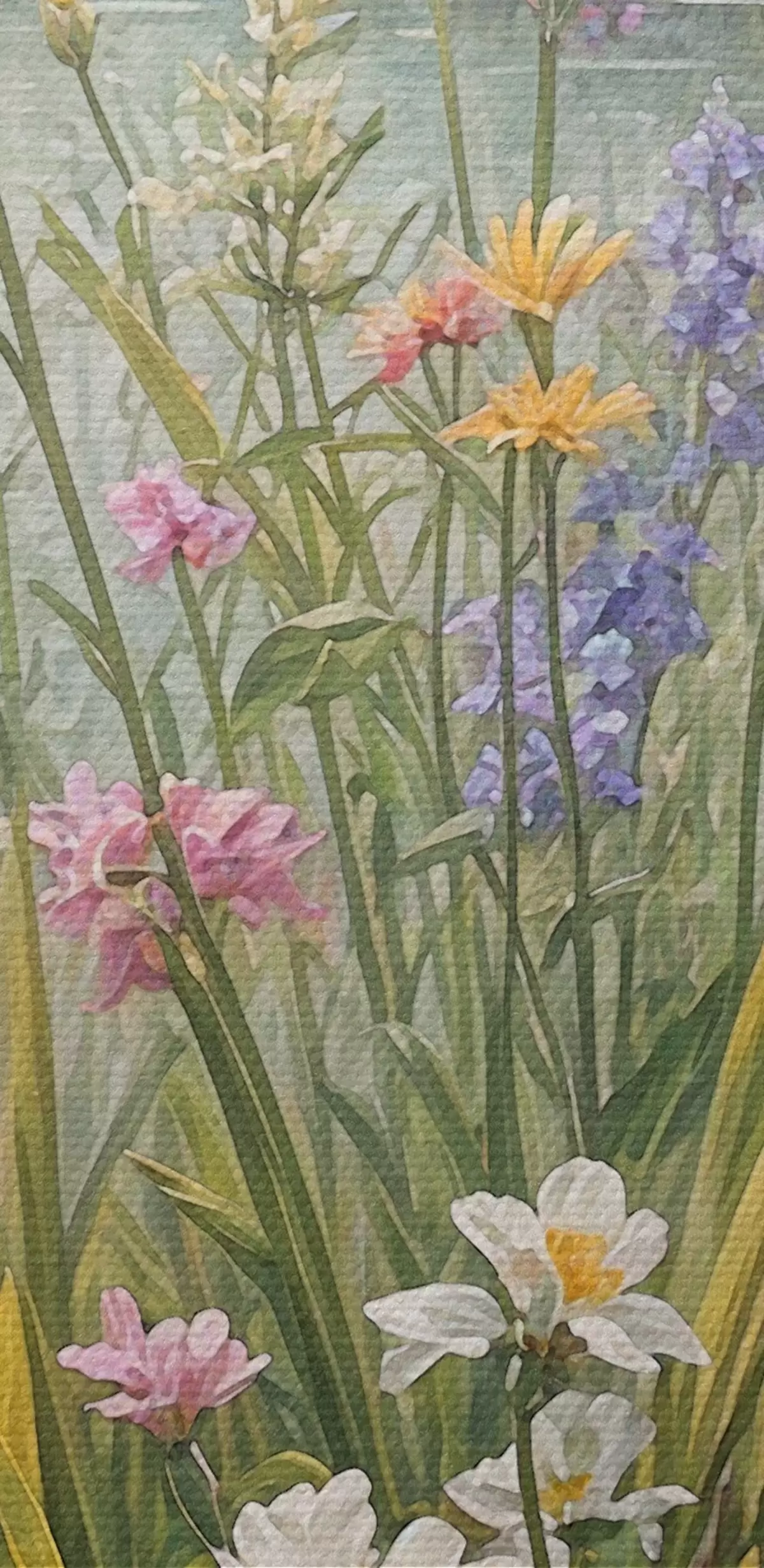 Picturi rotunde Flori sălbatice și ierburi înalte. Scena de ansamblu descrie un peisaj vibrant, natural Nr r38829