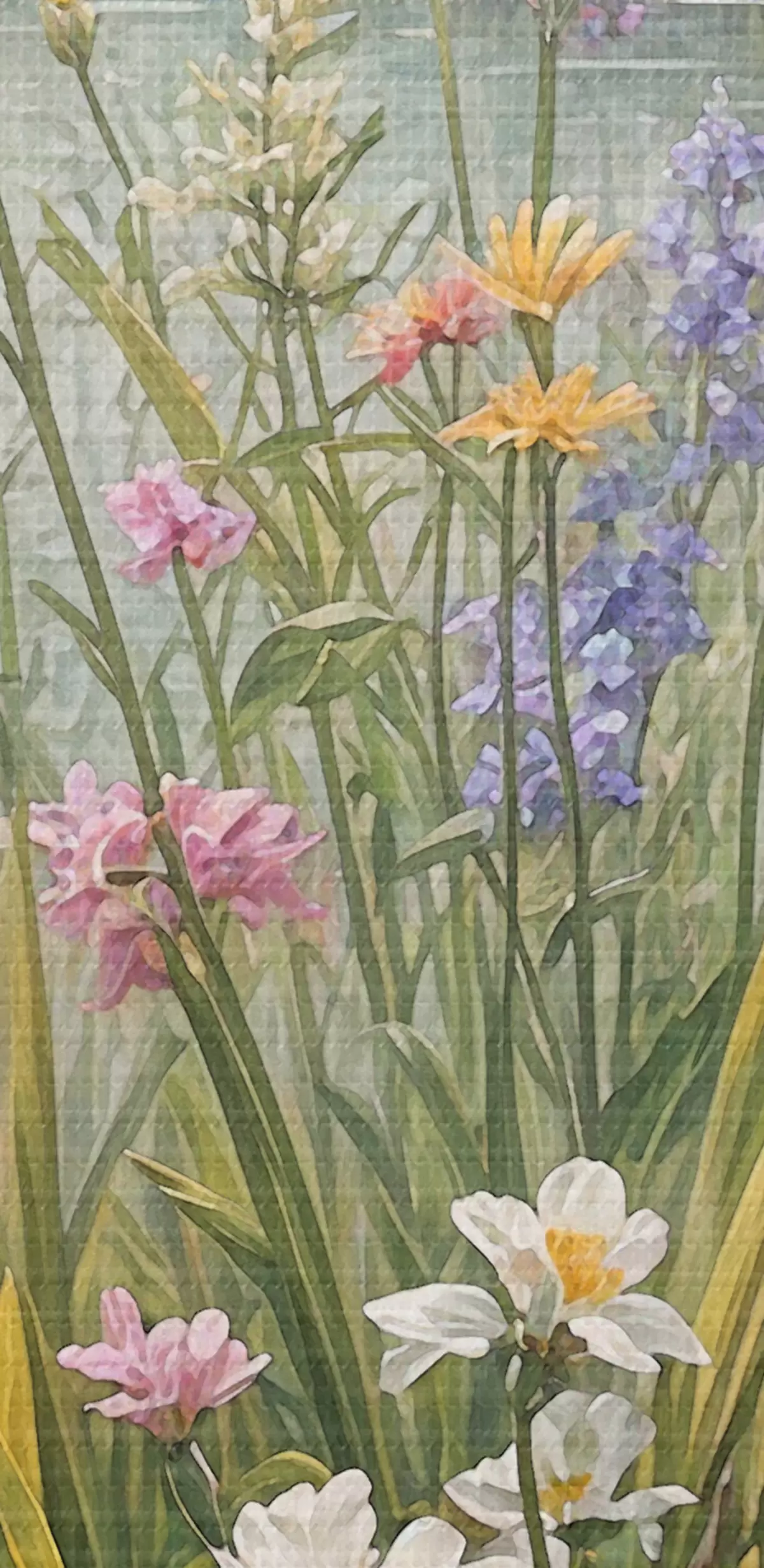 Picturi rotunde Flori sălbatice și ierburi înalte. Scena de ansamblu descrie un peisaj vibrant, natural r38829