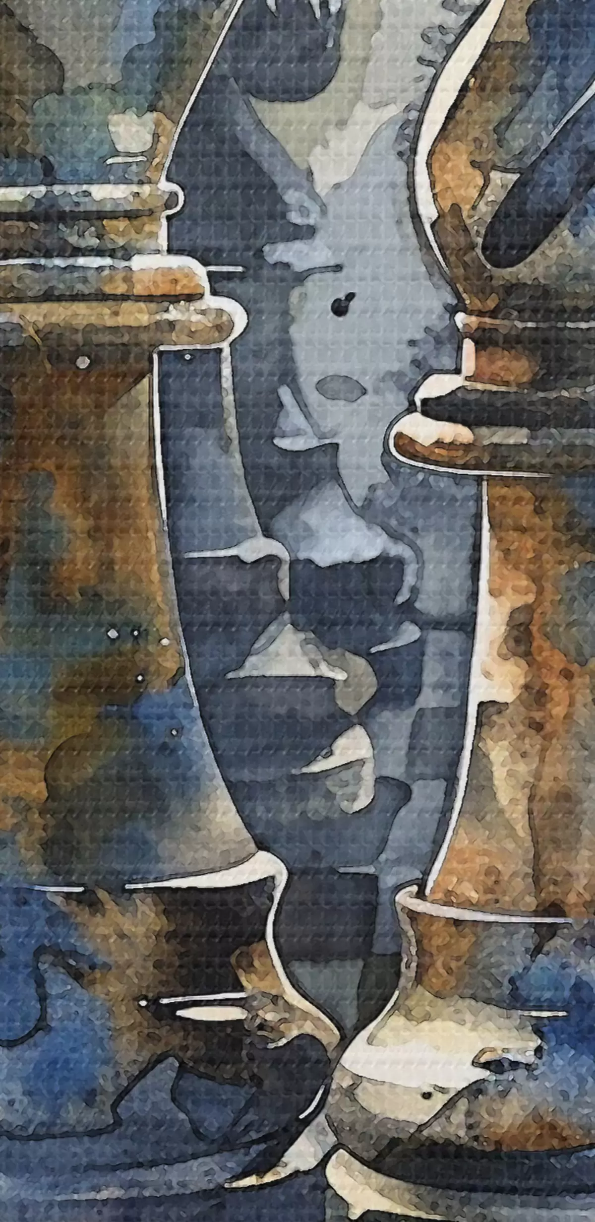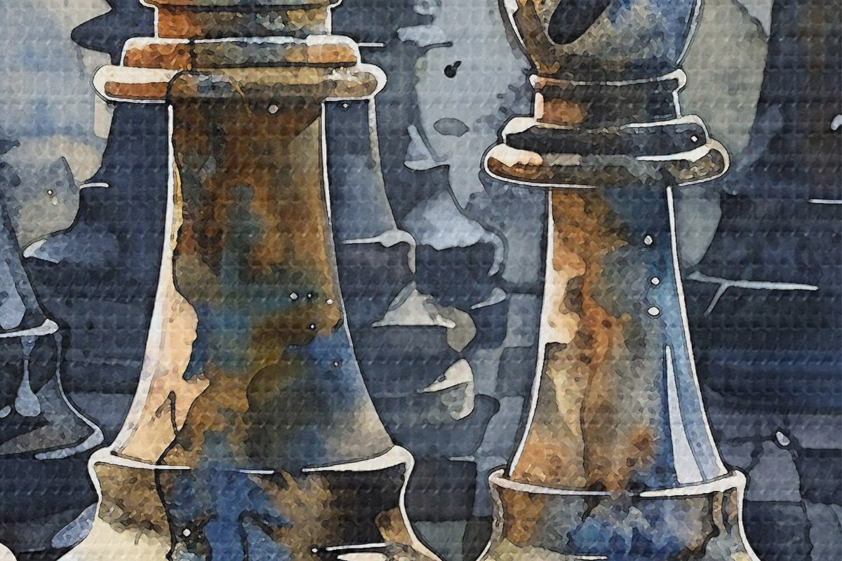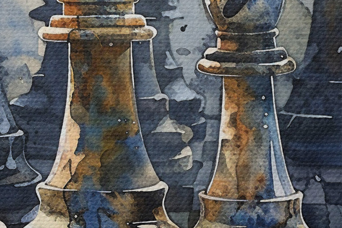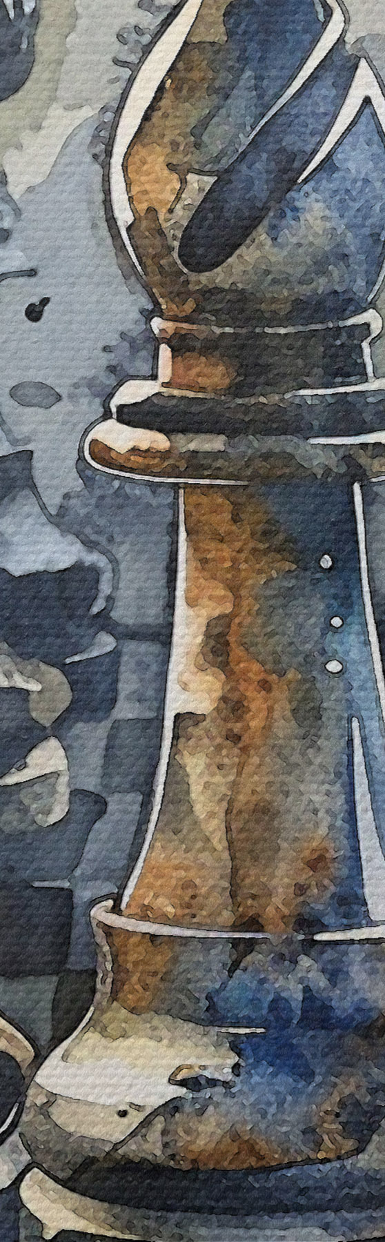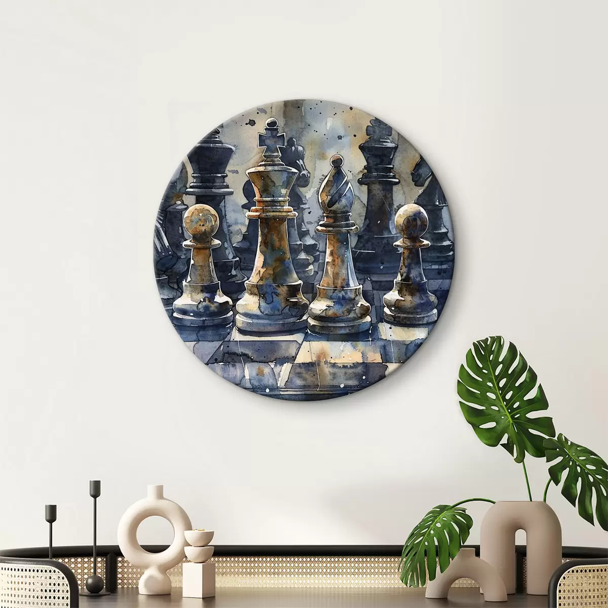 Picturi rotunde Pictură în acuarelă vedere de aproape a unui șah din metal sau piatră, cu desene și texturi detaliate Nr r38960