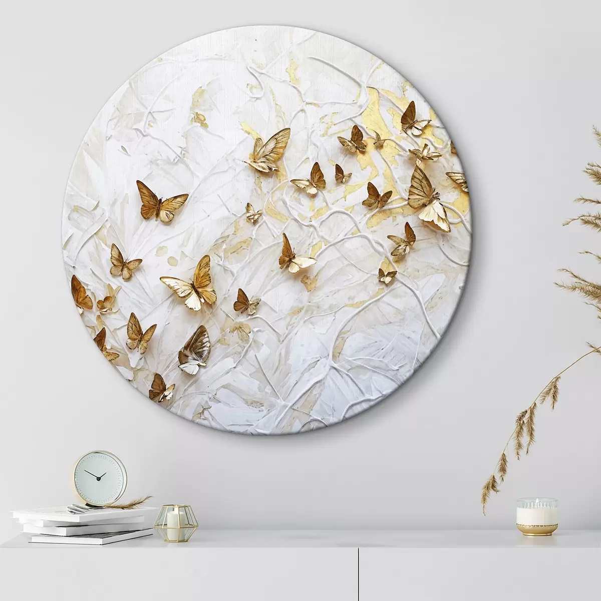 Picturi rotunde Un grup mare de fluturi pe un fundal alb, creând un model frumos și complicat r38970