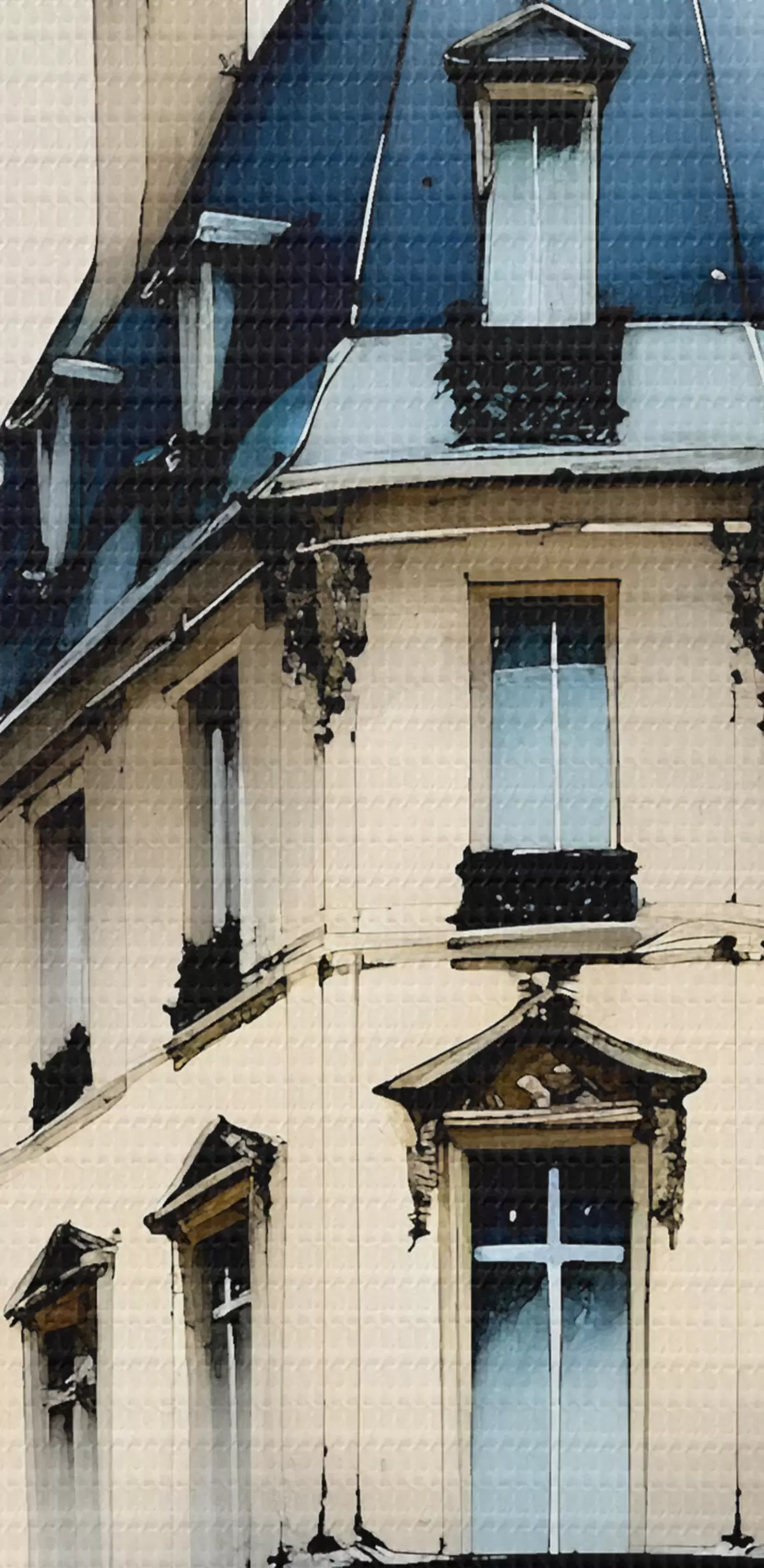 Picturi rotunde Pictură în acuarelă a unei clădiri istorice cu o fațadă curbată și elemente arhitecturale decorative Nr r38975
